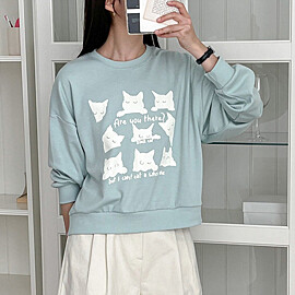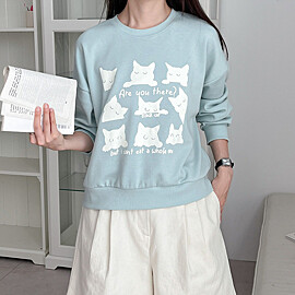고양이 프린팅 라운드 맨투맨_O2603TS045A