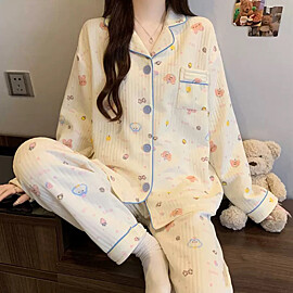 [잠옷세트] 도톰 누빔원단 겨울 수면 파자마 상하세트 2컬러