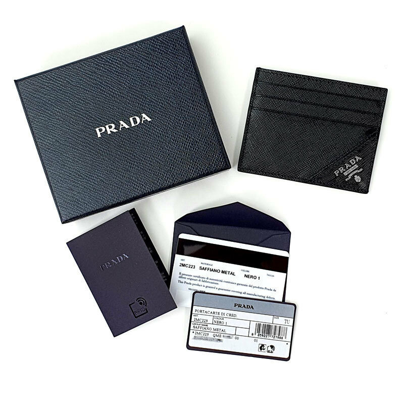 Keep your favourite cards at hand with this holder from Prada. Organise them instead of weighing down your favourite wallet. Details - Saffiano leather body - Silver tone hardware - 6 card slots, 1 slip pocket - Raised designer lettering Gender: Male Colour: Nero (Designer Colour) Material: Saffiano Leather Measurement: Length 10cm; Height 8cm; Width 0.3cm * There may be a slight difference in the tone of colors depending on the resolution of your monitor. * Do note that there may be a 1-2cm difference in measurements depending on how the item is measured and workmanship. * Marketing Credits are not valid for use in this sale event. * Discount codes are not valid for use in this sale event.