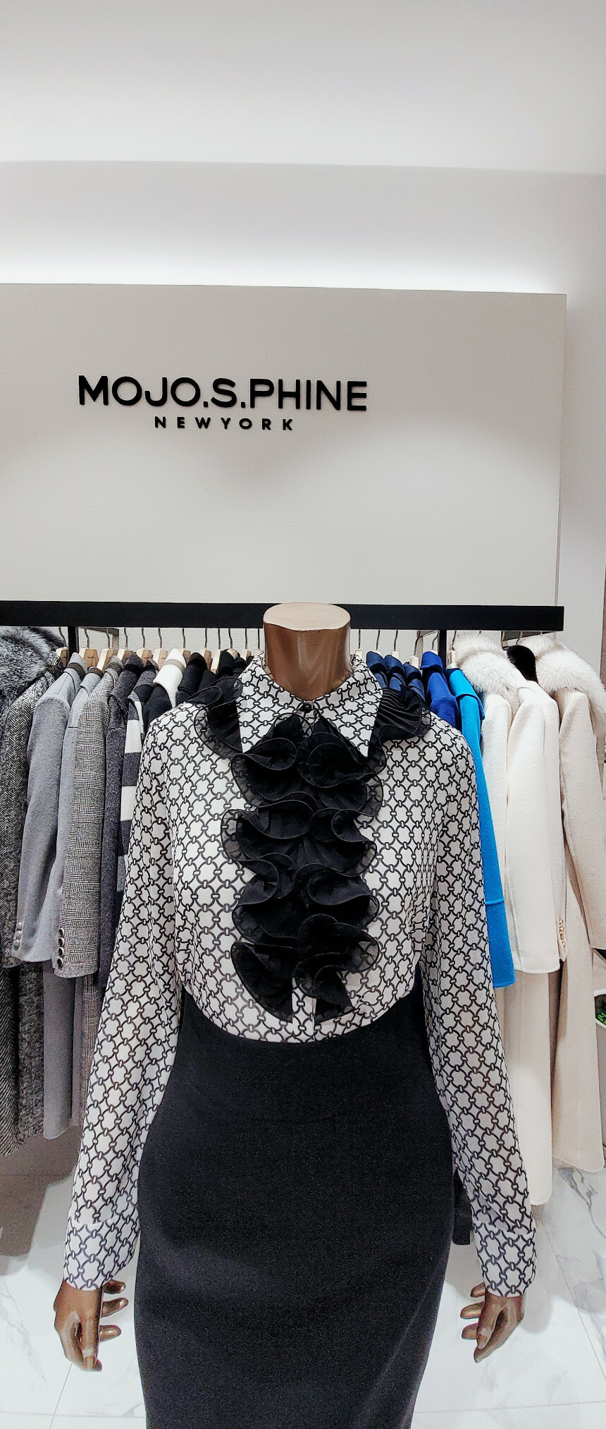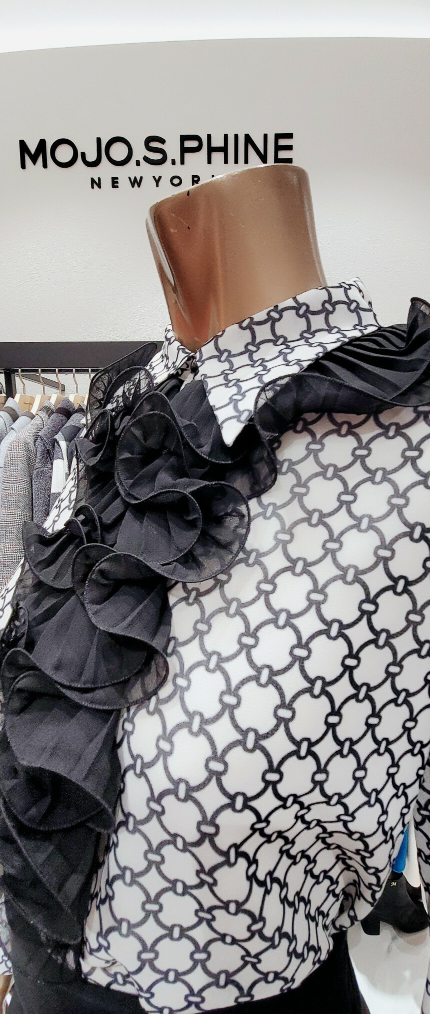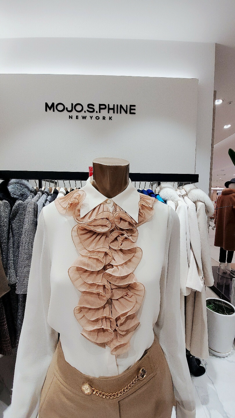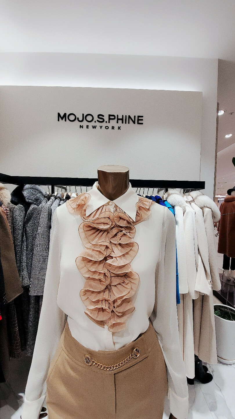 프릴포인트 쉬폰 블라우스 입니다. 테일러칼라에 프릴장식이 단정하면서 여성스러운 디자인으로 어디서나 부담없이 입으실수 있는 쉬폰 블라우스입니다.