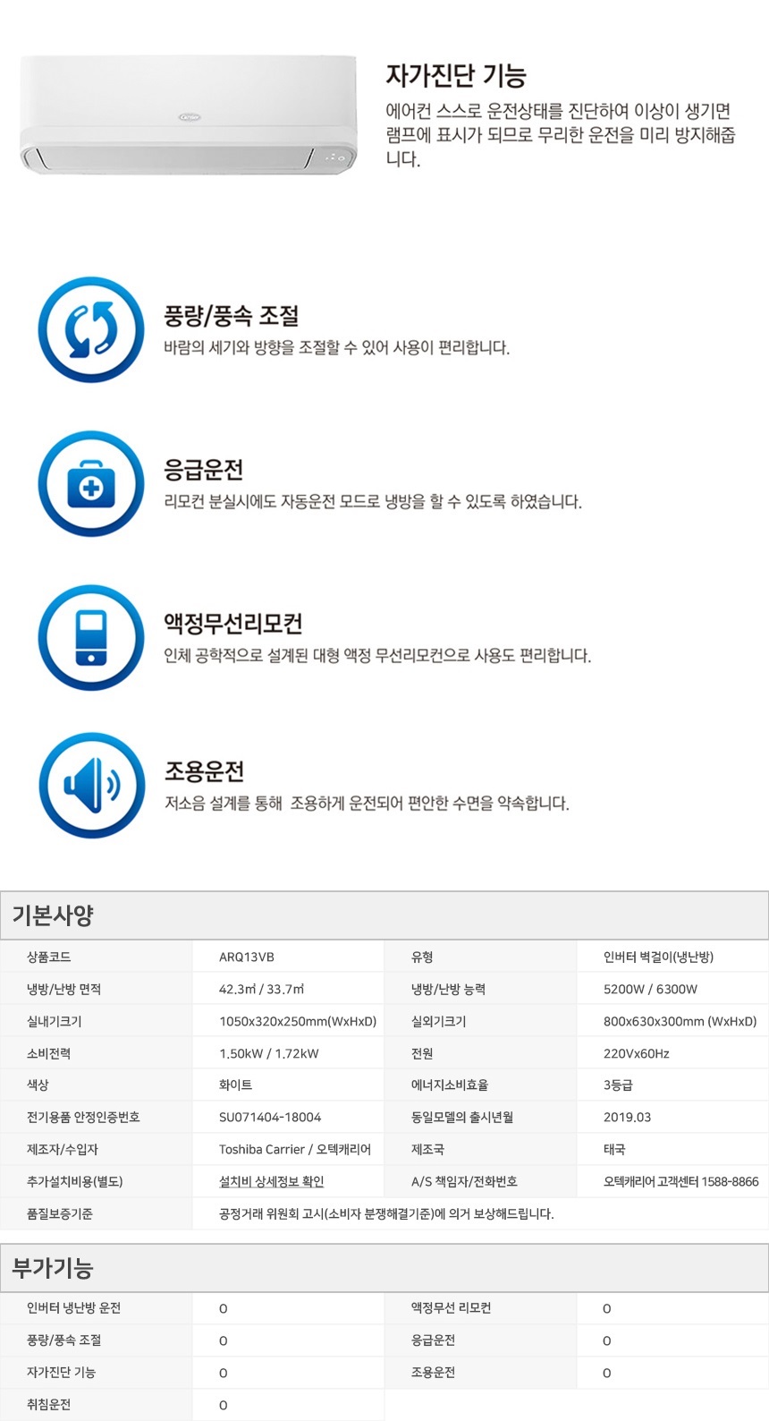 [캐리어/ARQ13VB] 벽걸이에어컨 / 실외기 포함 / 세트 새 상품