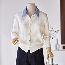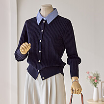 줄지 카라 꽈배기 가디건_T2502CD007A