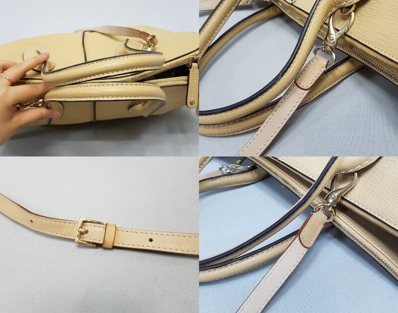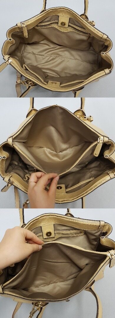 색상 - 베이지 상태 - 위 사진과 같이 자연스러운 실생활감은 있으나, 전체적으로 양호한 상태입니다. * 구성품 - 가방만 있는 상태입니다.