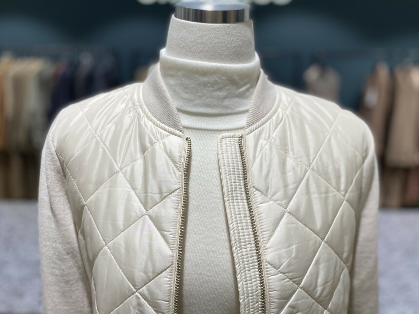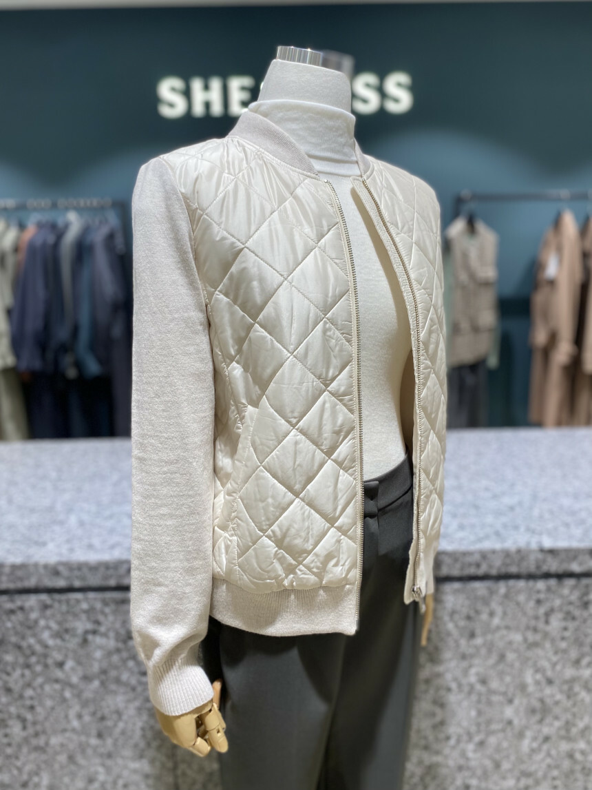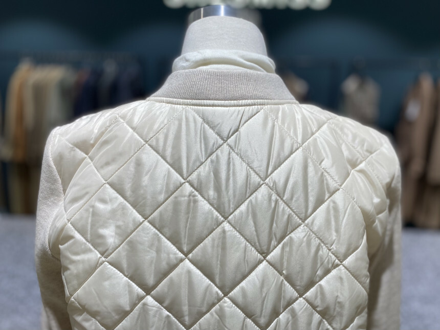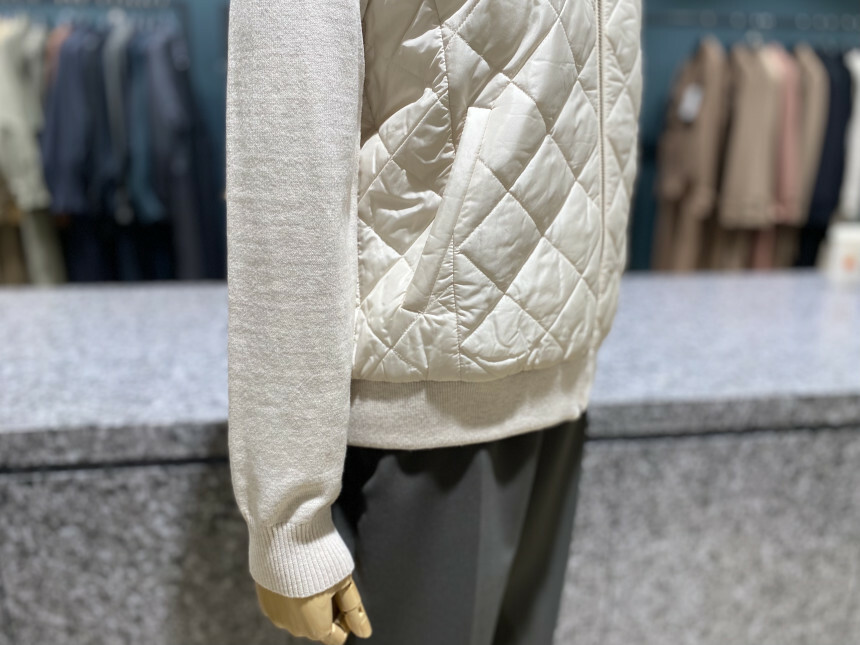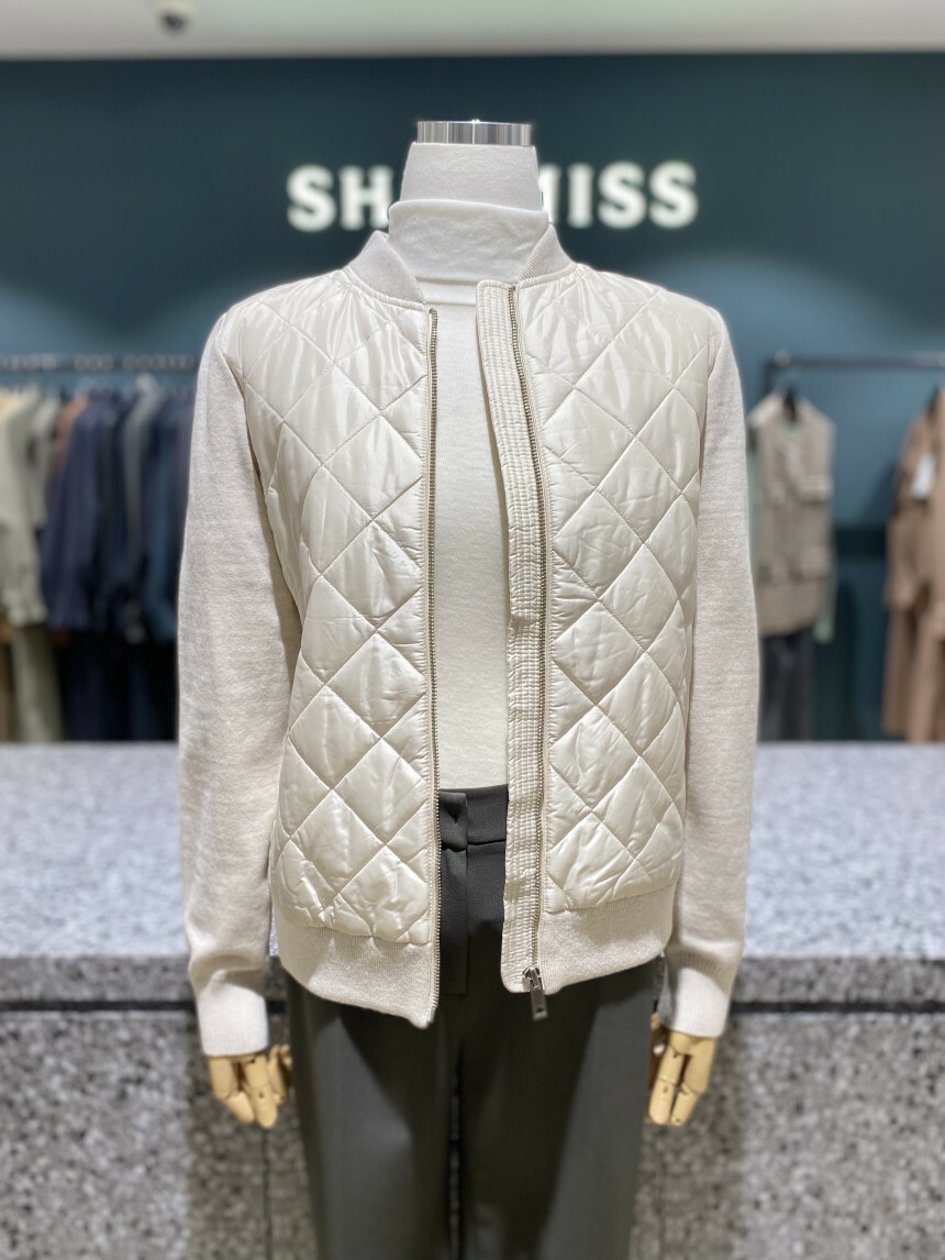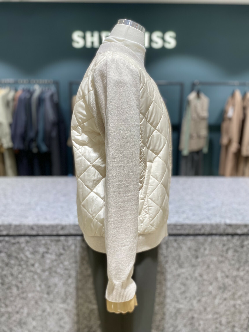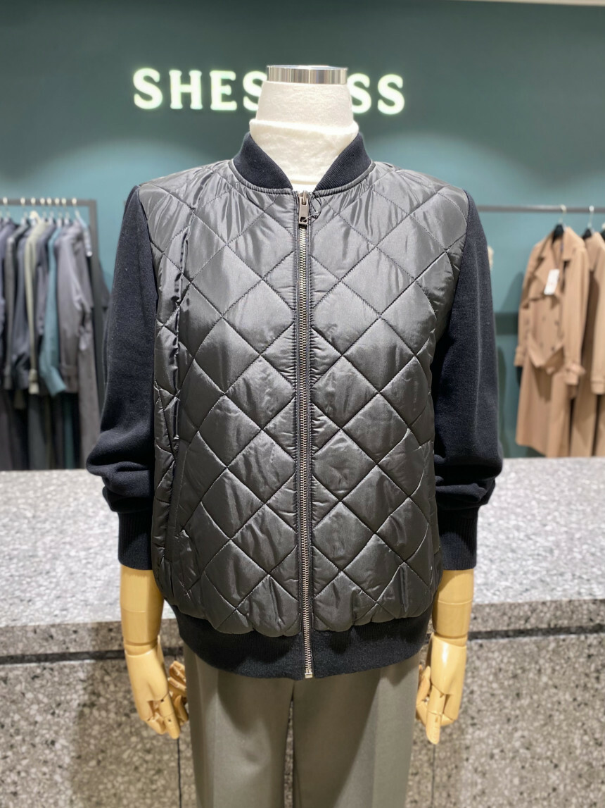 심플하고 깔끔한 누빔 점퍼에 니트 배색을 주어