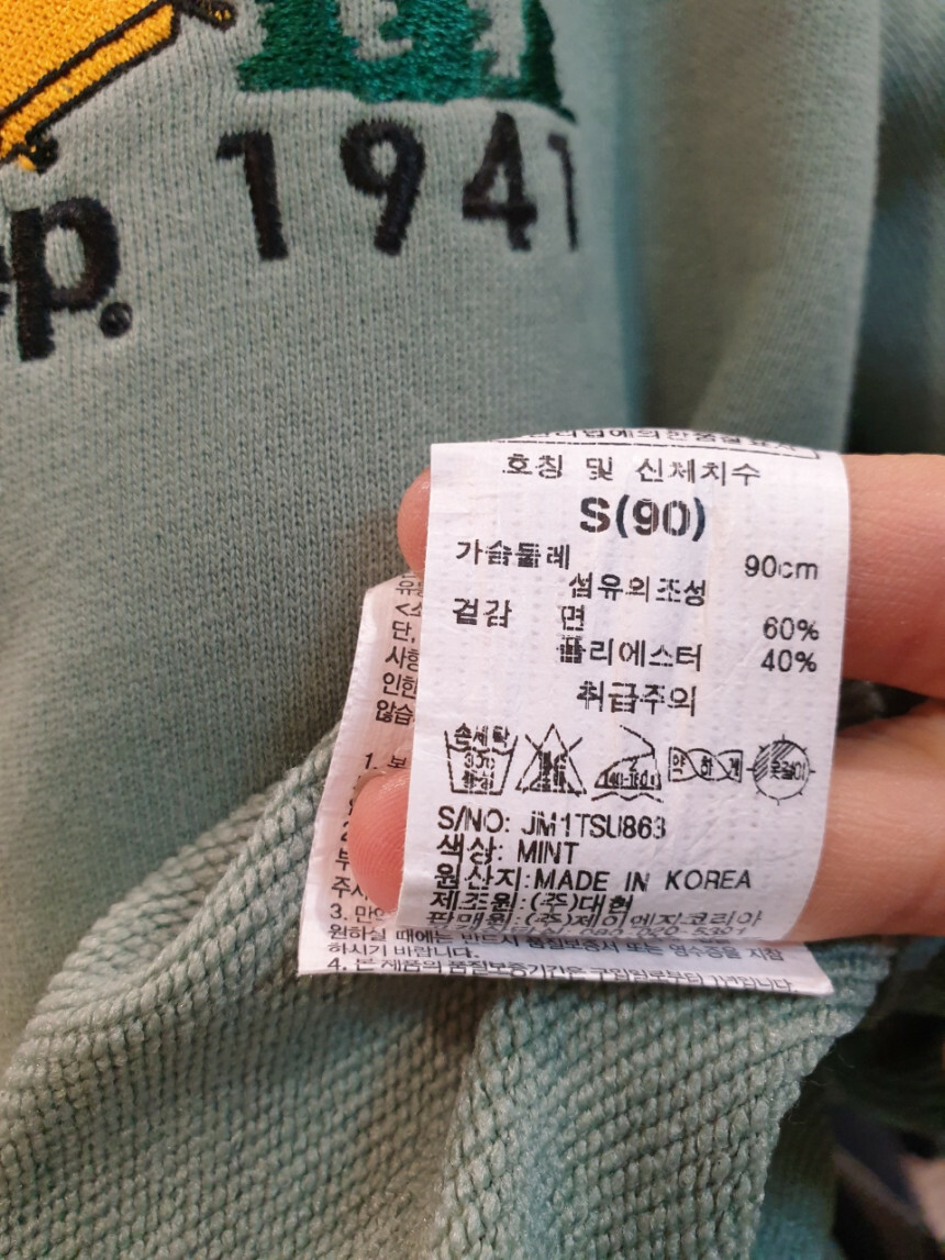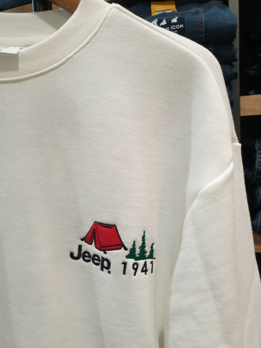 캠핑자수 맨투맨 JM1TSU863Color오프화이트민트SizeS(90)M(95)L(100)XL(105)