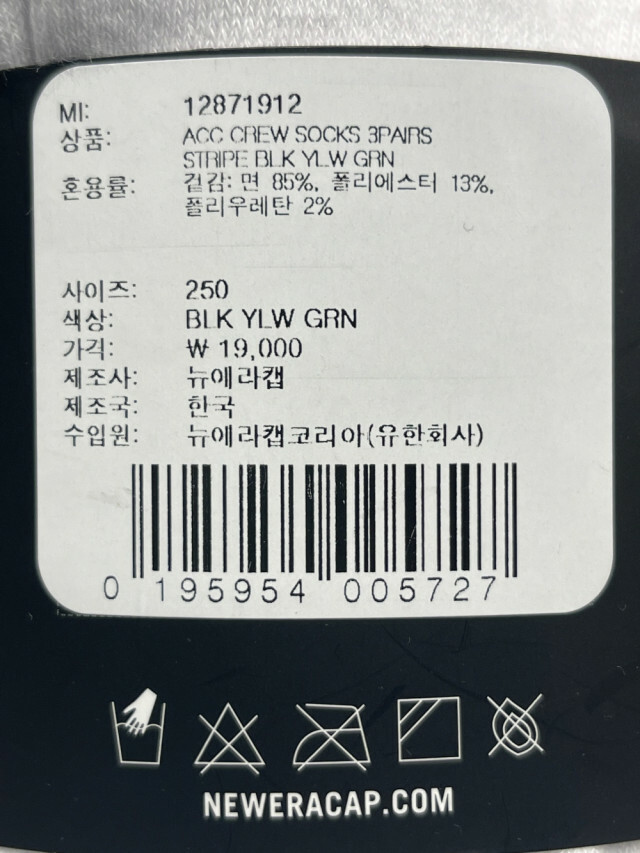 뉴에라 크루 삭스 3팩 스트라이프 옐로우 그린 12871912