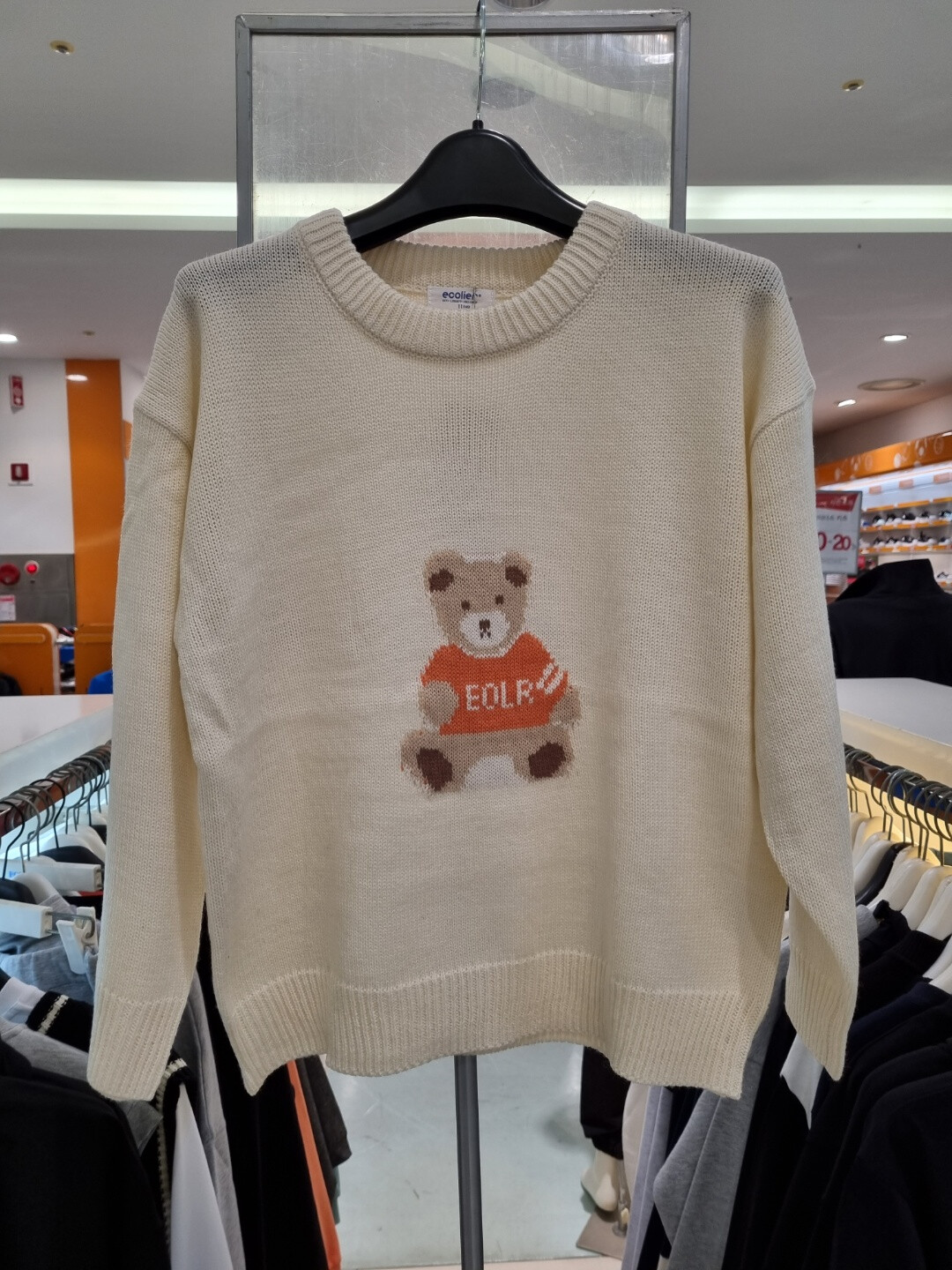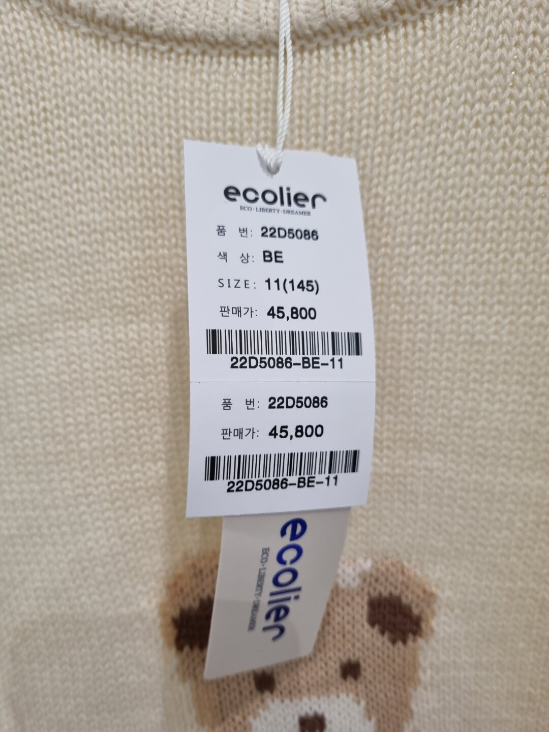 부드러운 크림색 니트에 귀여운 곰돌이 포인트 디자인으로 귀여운 연출이 용이 합니다.