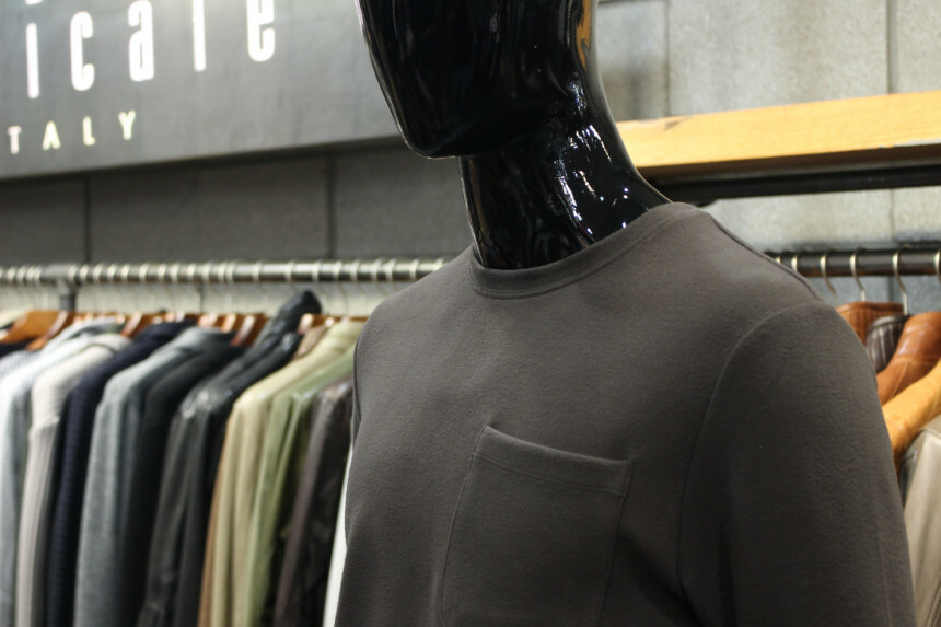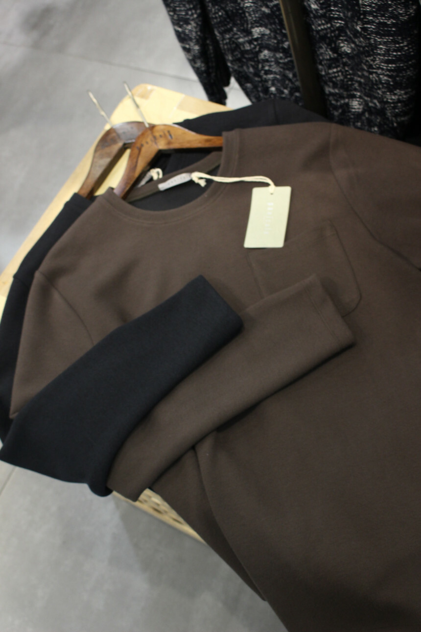 가을겨울 기본아이템으로 활용도좋은 라운드넥 포켓티입니다