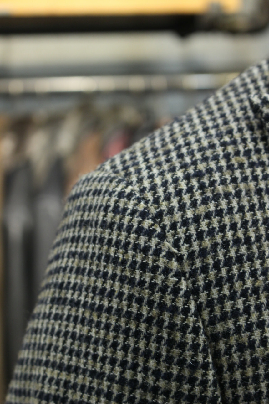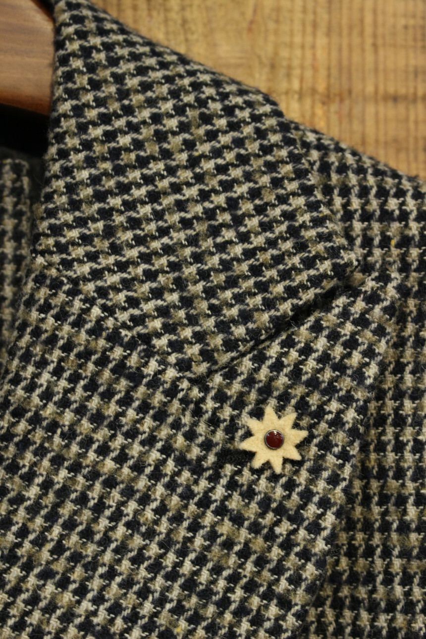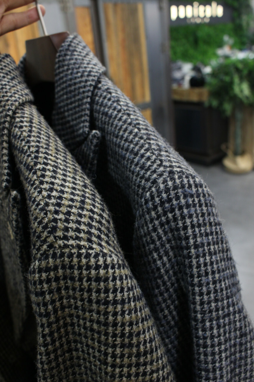 두껍지않은 울혼방원단의 하운드투스체크패턴으로 라인감이 잘 떨어지며 무게감이 가벼운편입니다