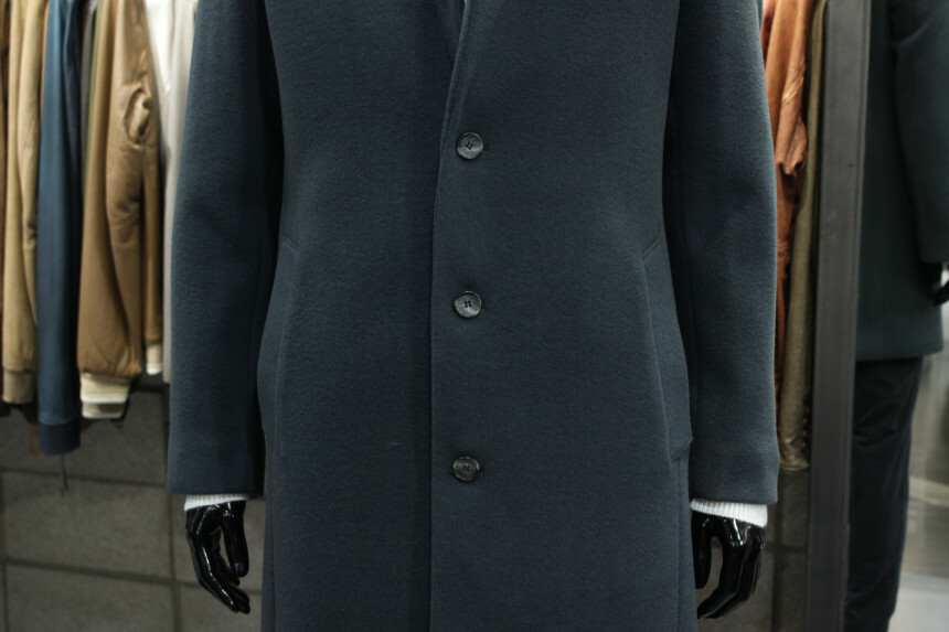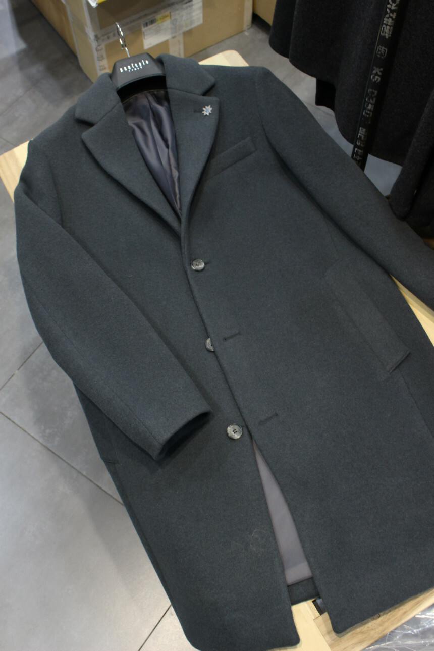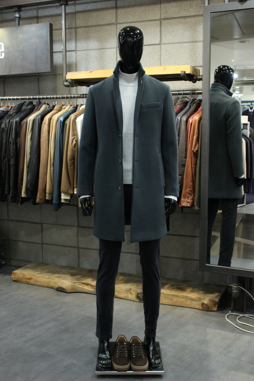 군더더기 없이 깔금한 디자인의 3버튼 기본싱글체스터코트 디자인으로