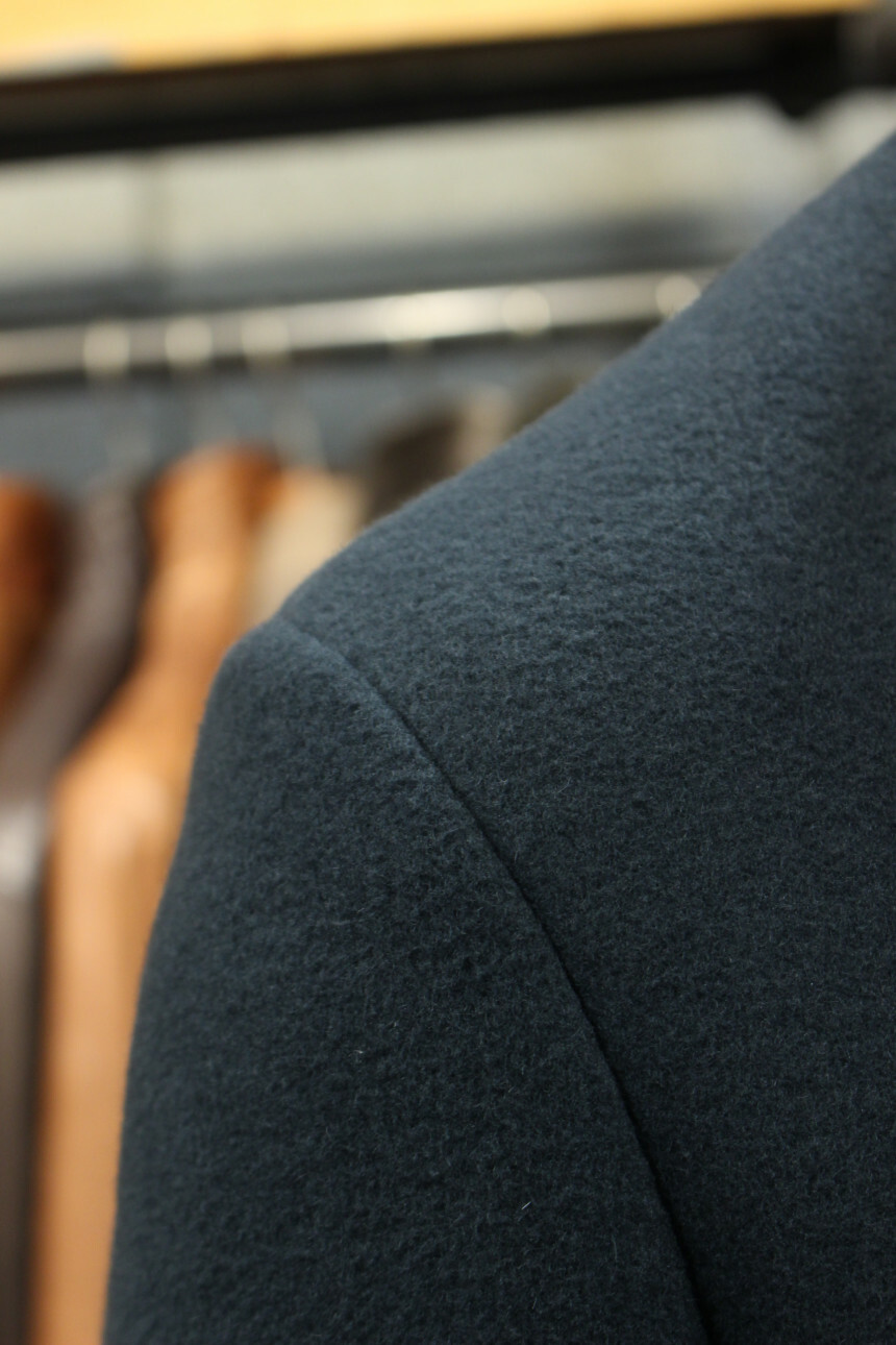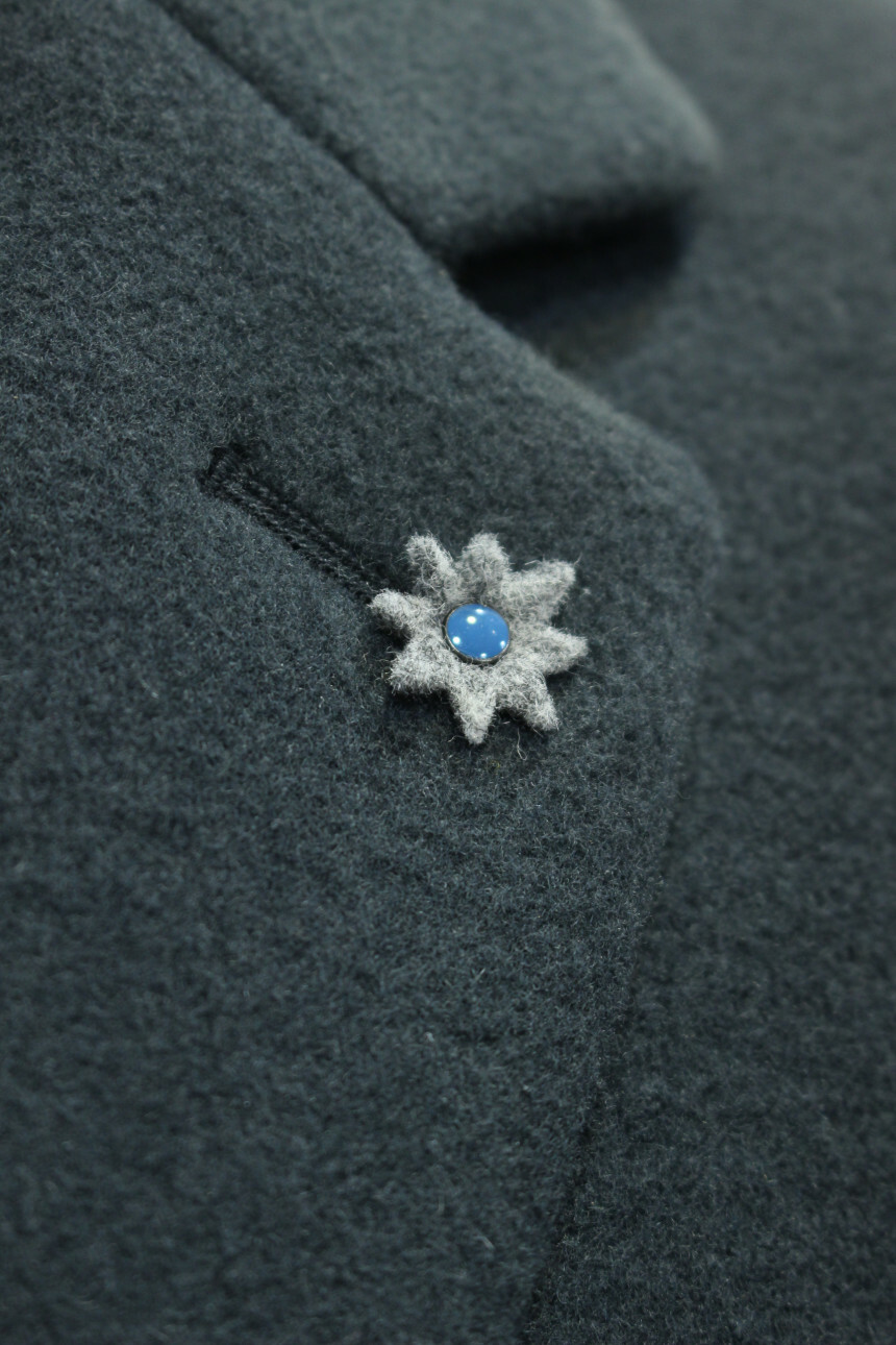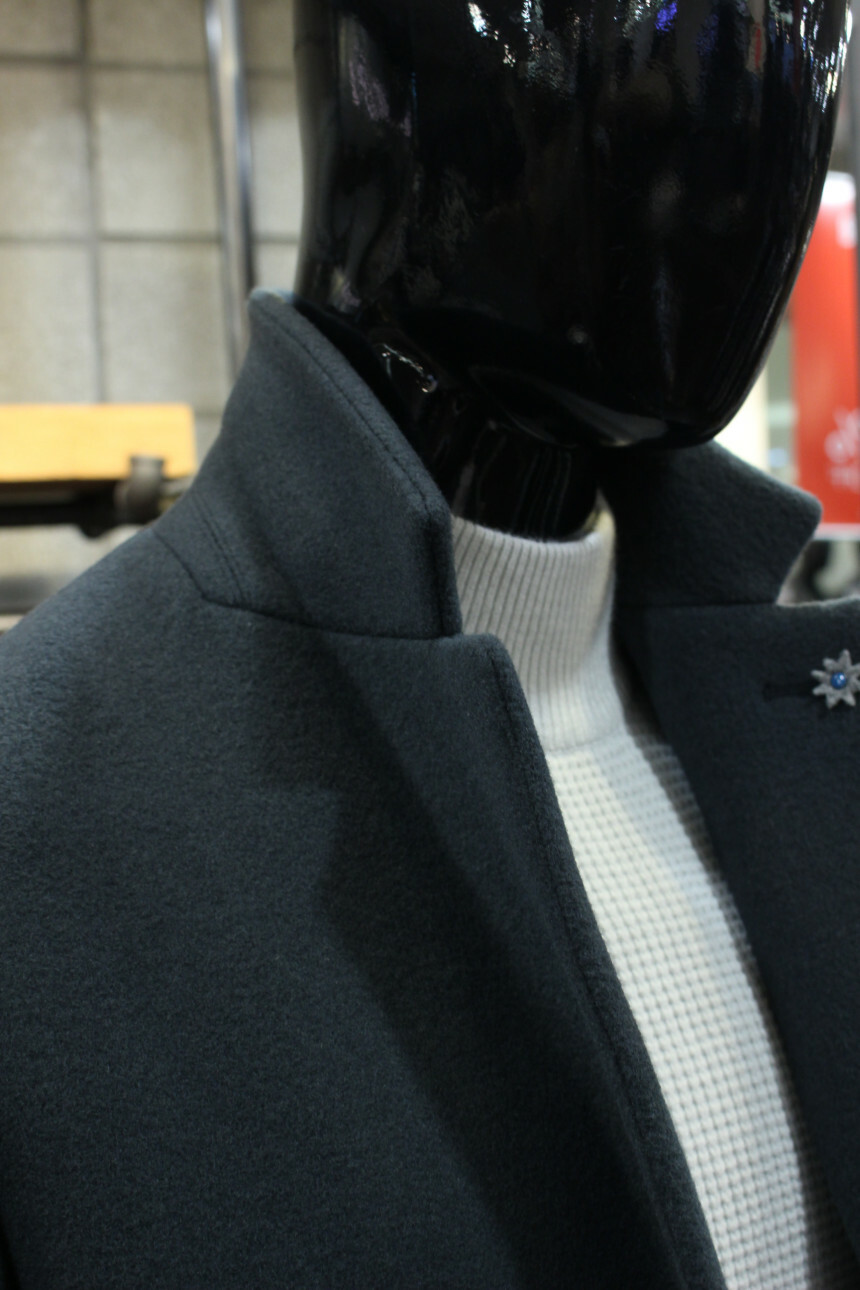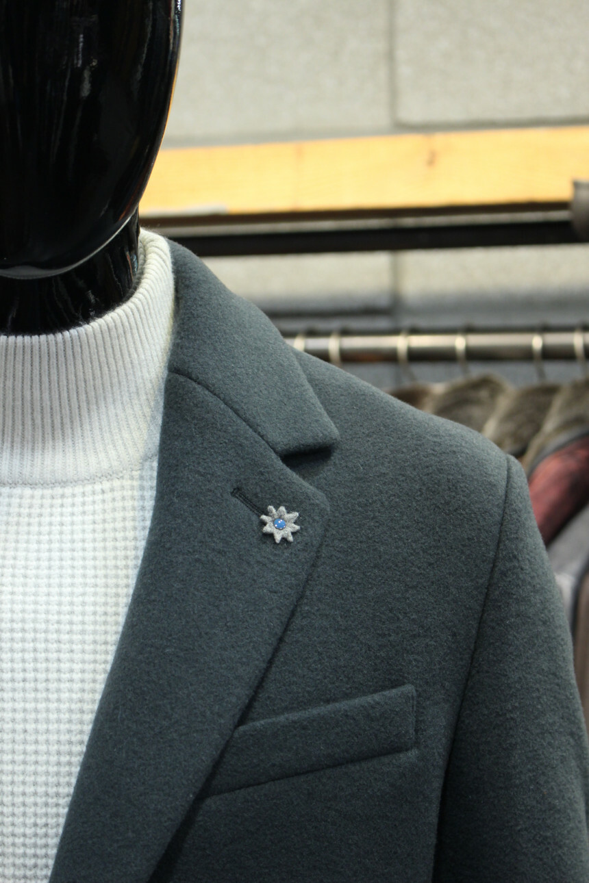 두툼한 울혼방원단으로 보온성이 좋으며 탈부착가능한 부토니에가 있습니다