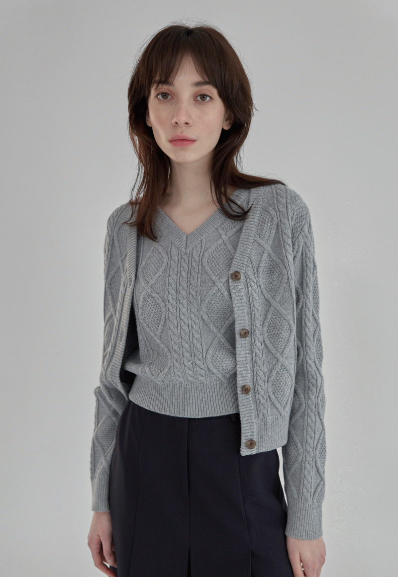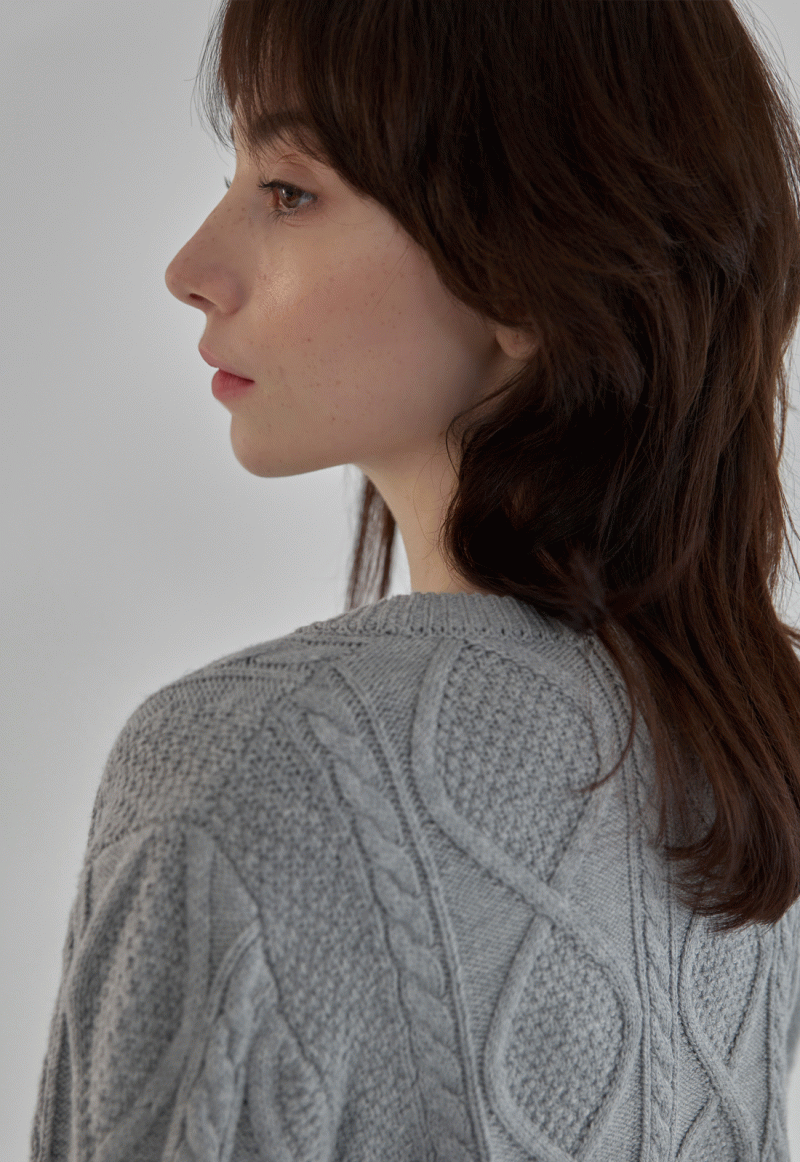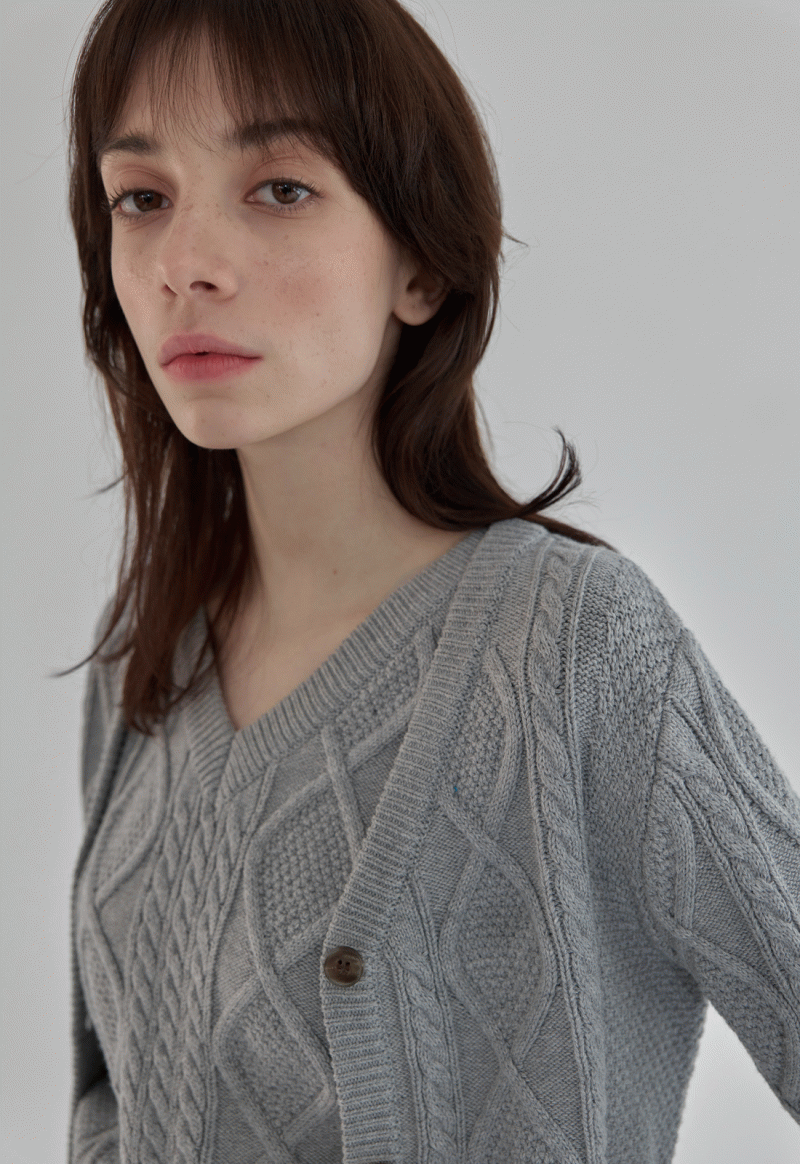 여러가지 케이블 변형으로 짜여서 만들어진 니트 가디건입니다.