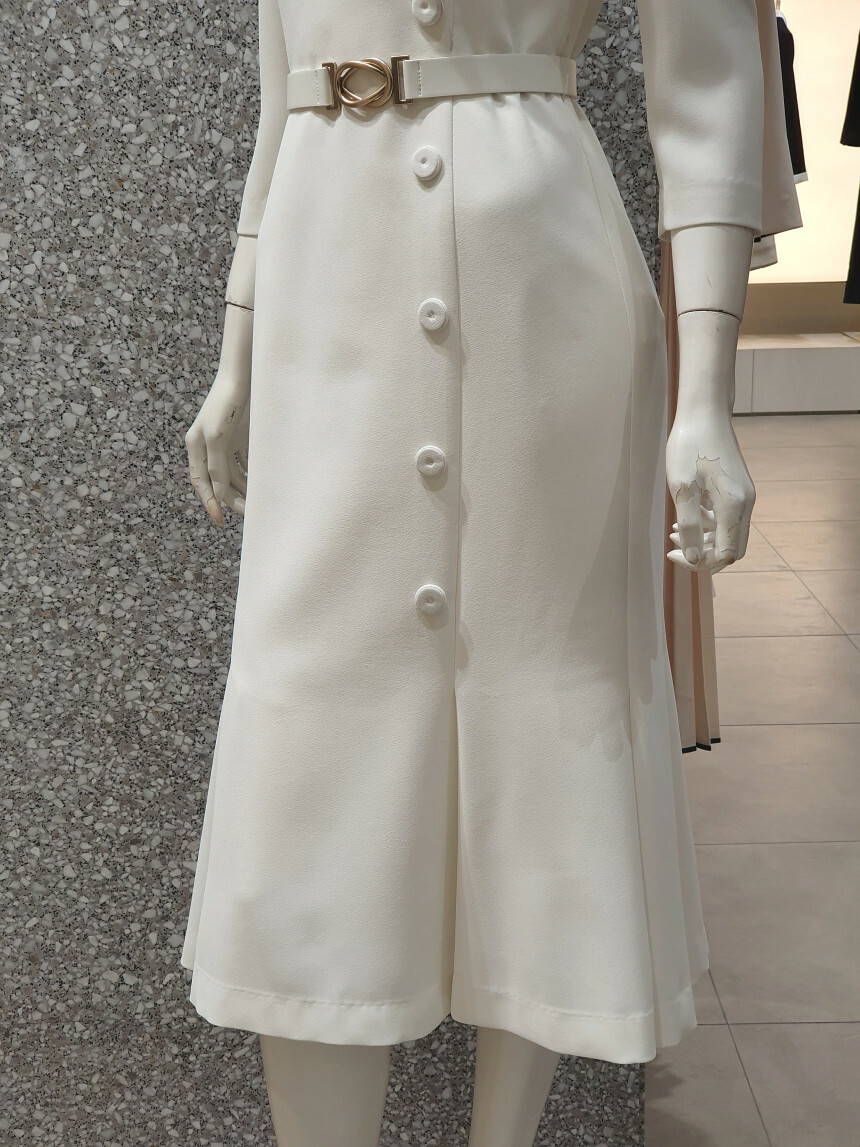 스커트의 버튼 장식이 맵시를 더하며