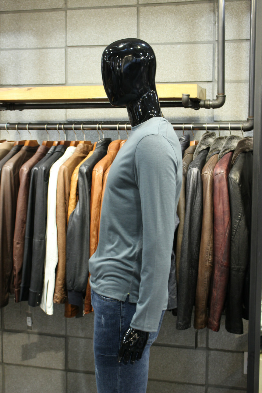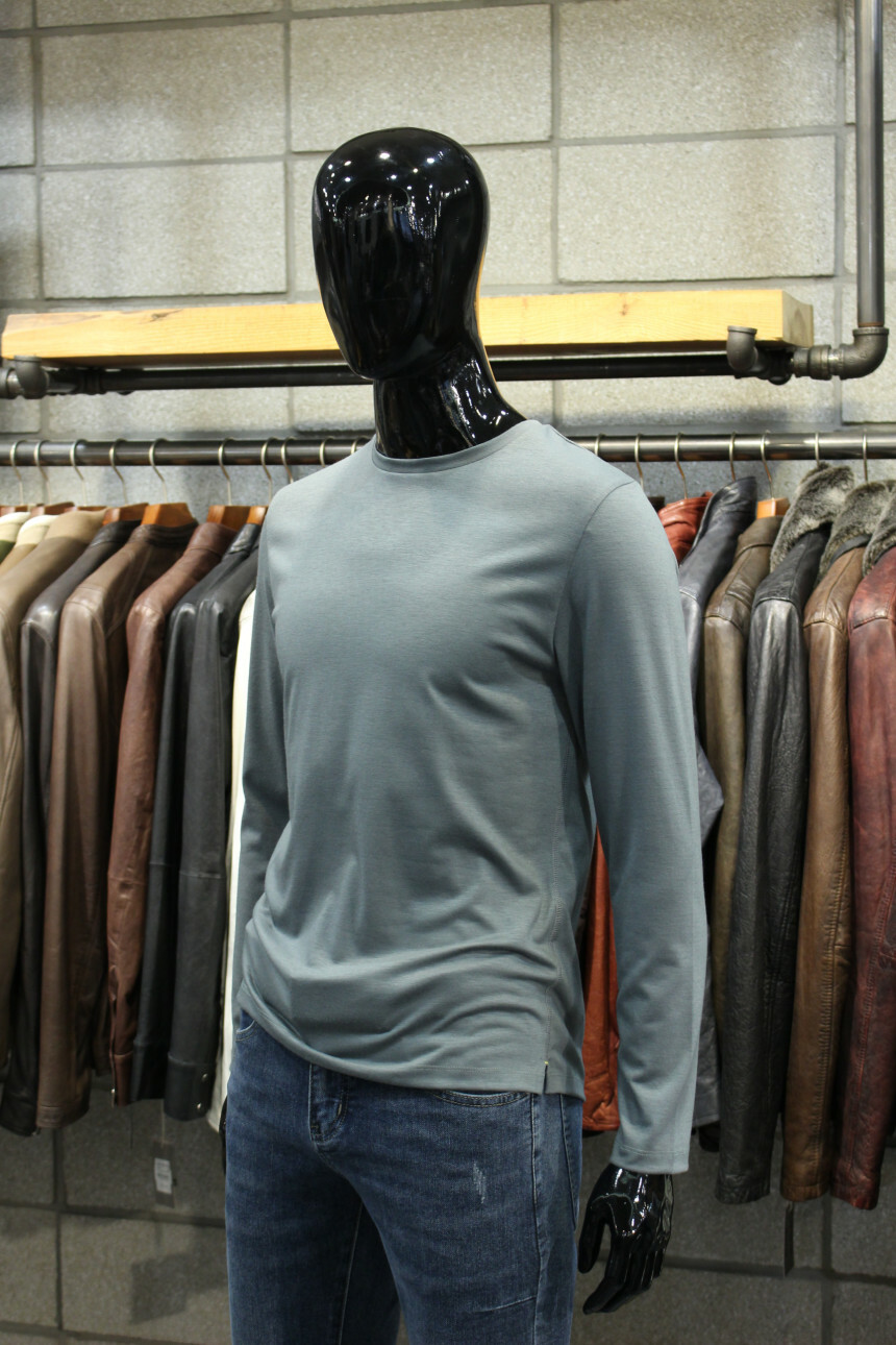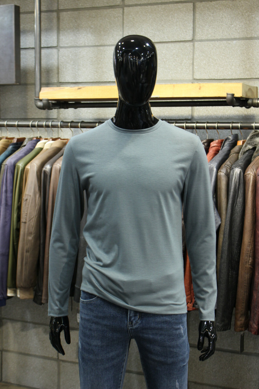 부드러운 촉감과 짱짱한 신축성으로 착용감좋은 라운드넥긴팔티입니다