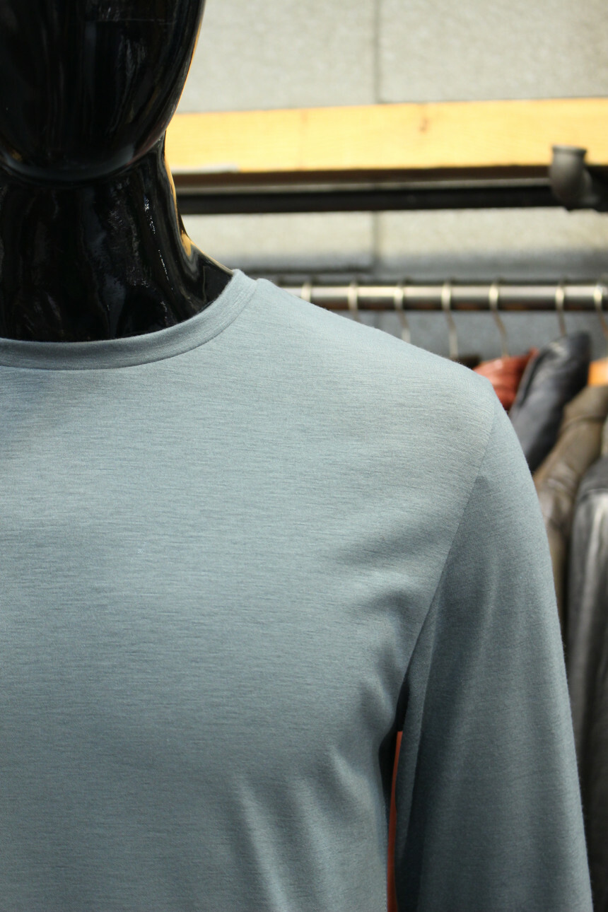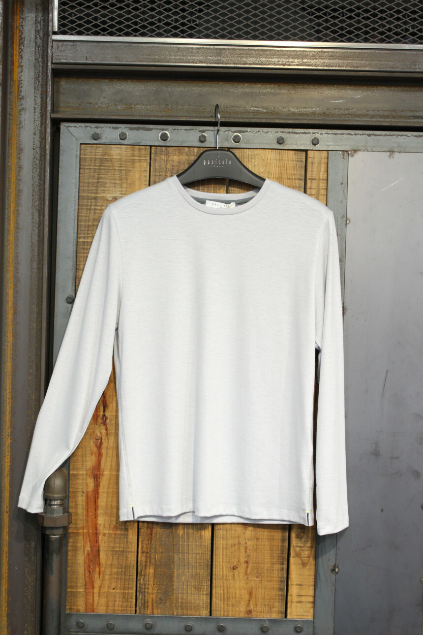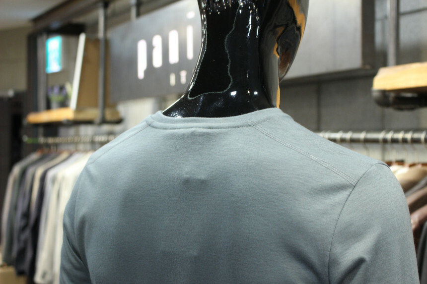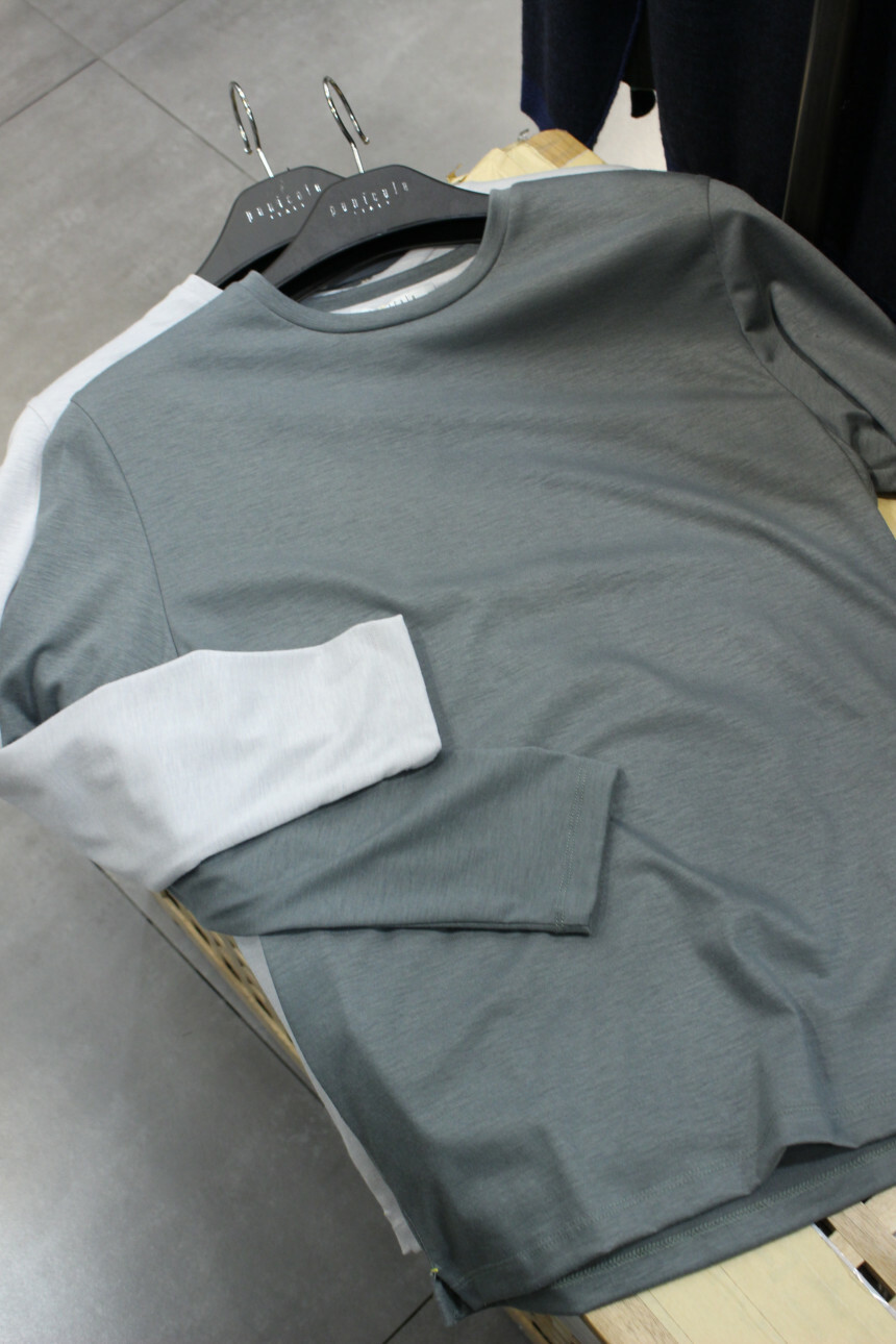 부드러운 촉감과 짱짱한 신축성으로 착용감좋은 라운드넥긴팔티입니다