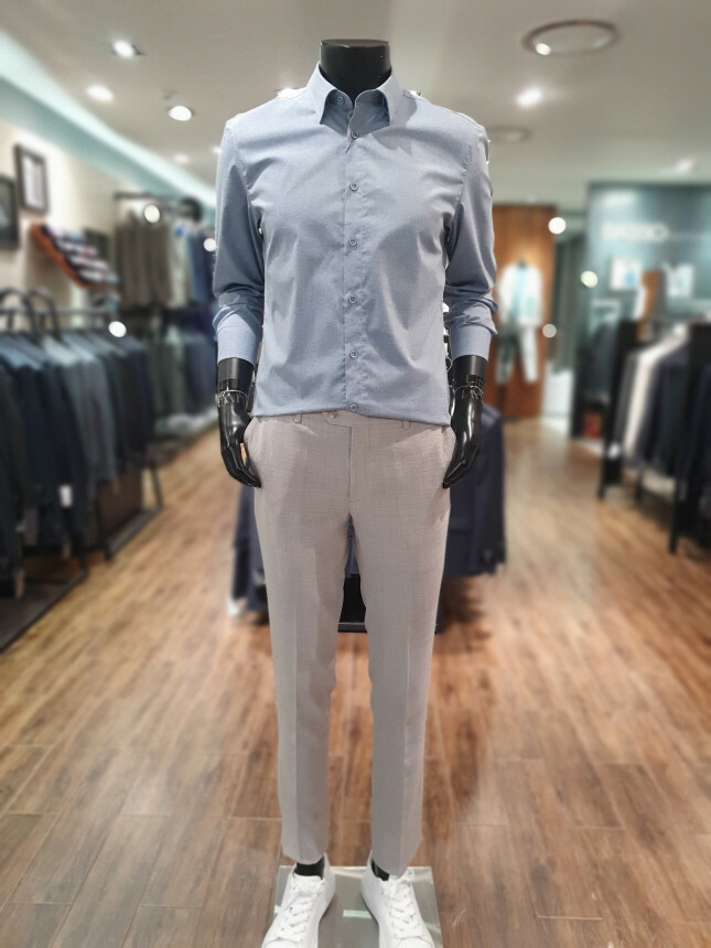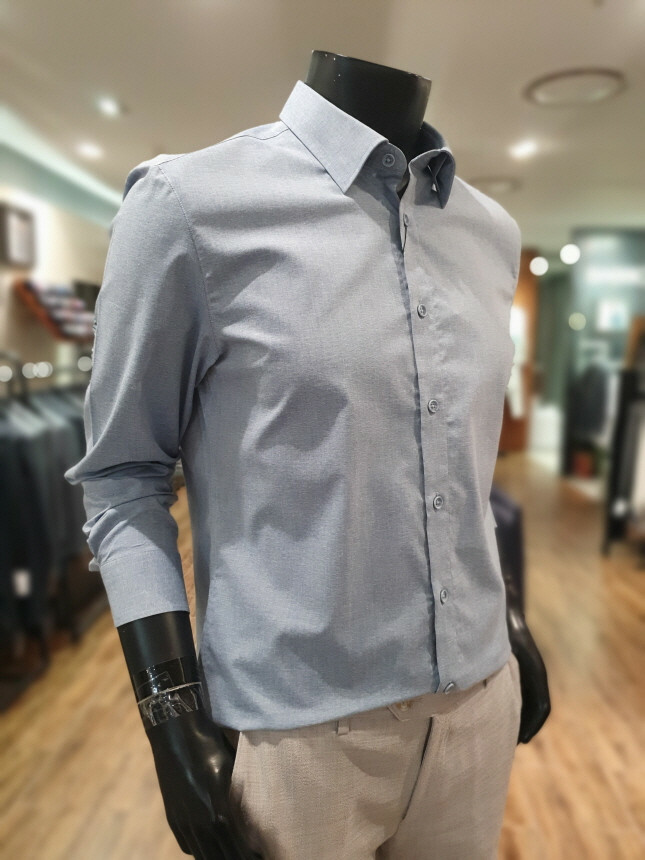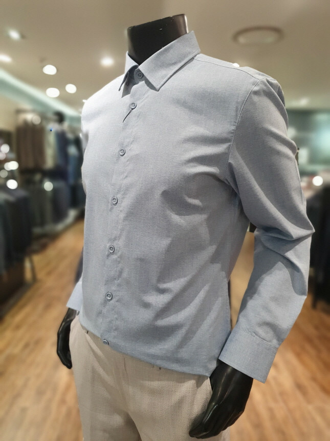 블루 면혼방 베이직 셔츠