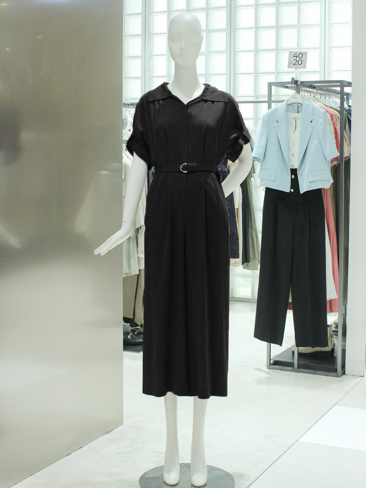 와이드한 바지핏으로 벨트 아이템으로 실루엣을 잡아주며