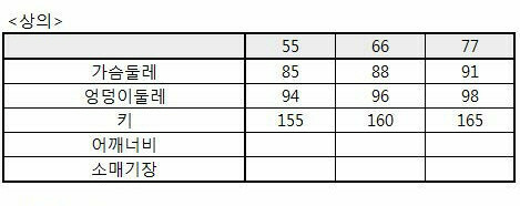 · 안감 : □ 전체 □ 부분 ■ 없음