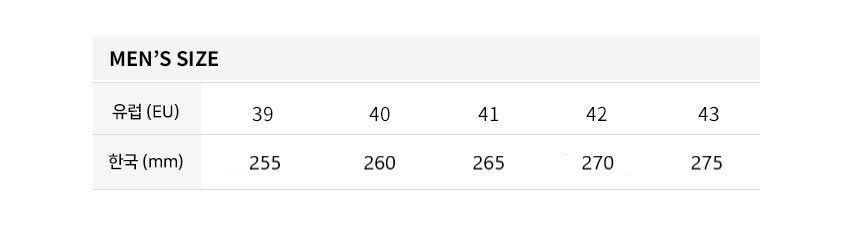 사이즈 : 255(39),260(40),265(41),270(42),274(43)