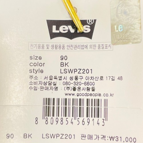 유로져지 골지원단을 사용한 프리미엄 제품으로 은은한 스트라이프 느낌에 리바이스 골드로고가 고급스러운 느낌을 주는 디자인.