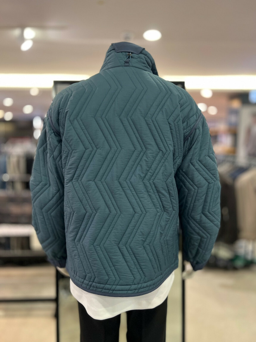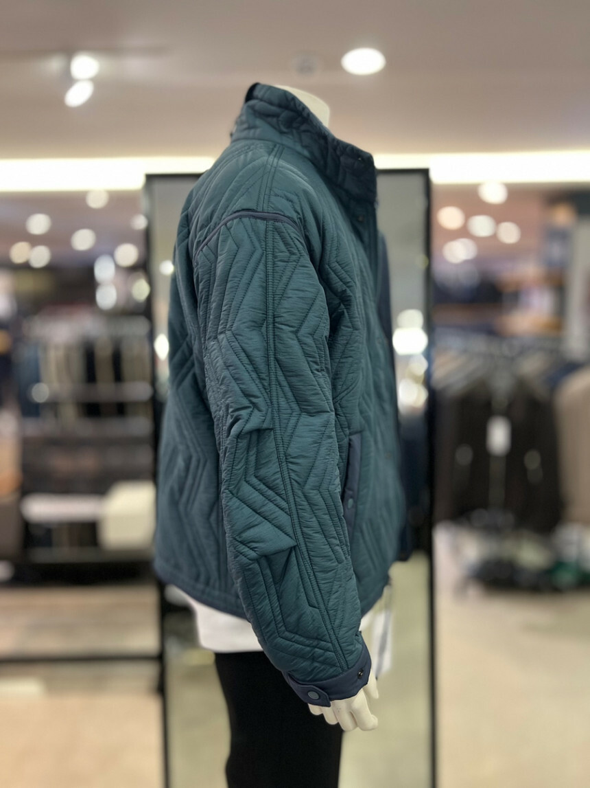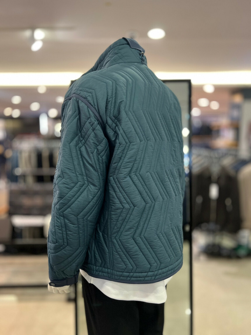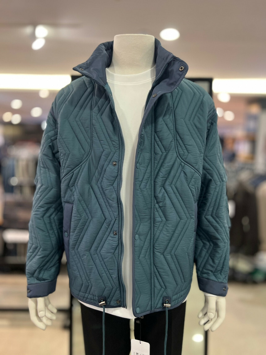 블루 쉐브론 패턴 퀄팅 오버핏 점퍼