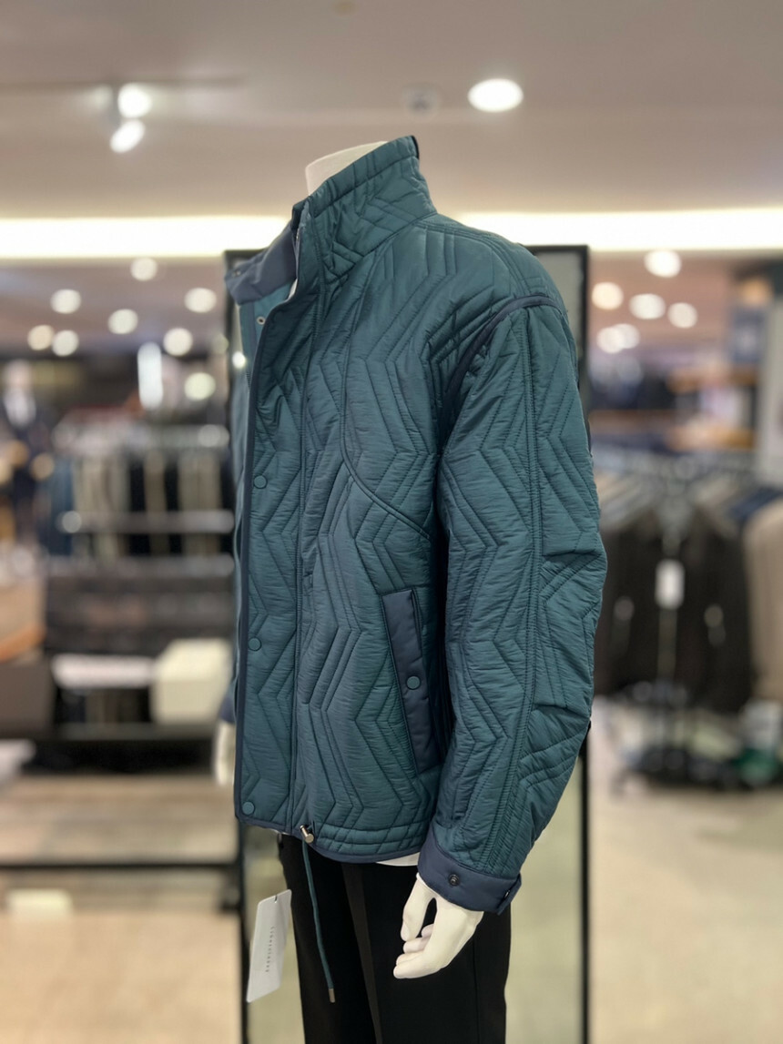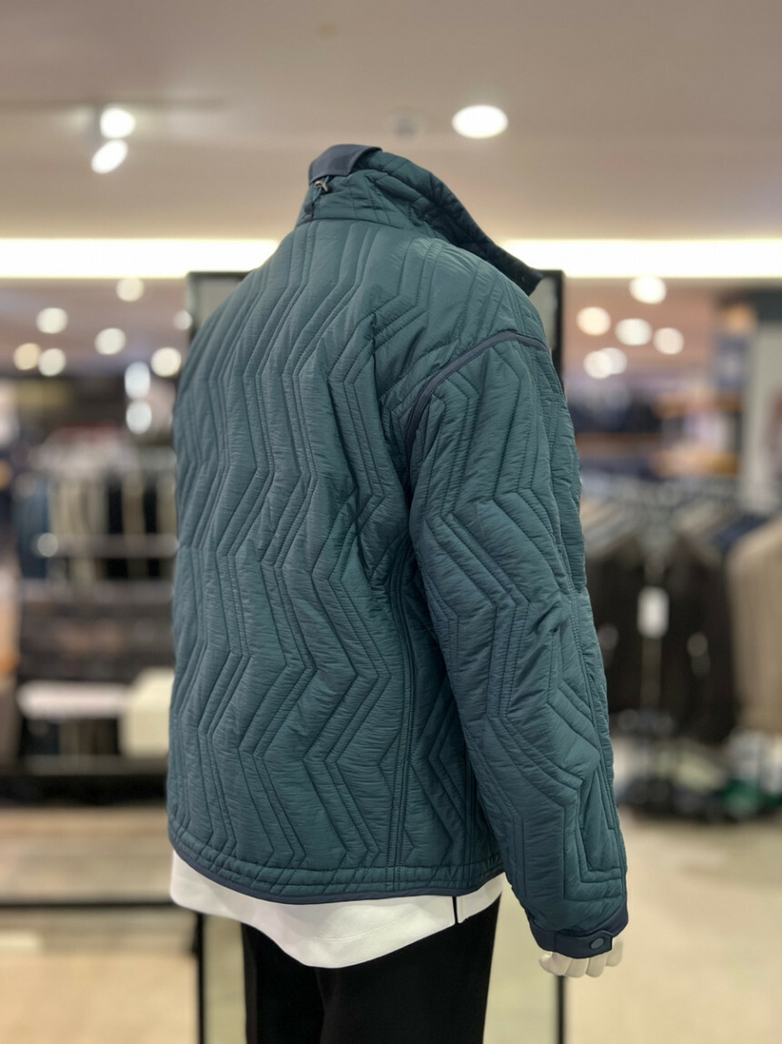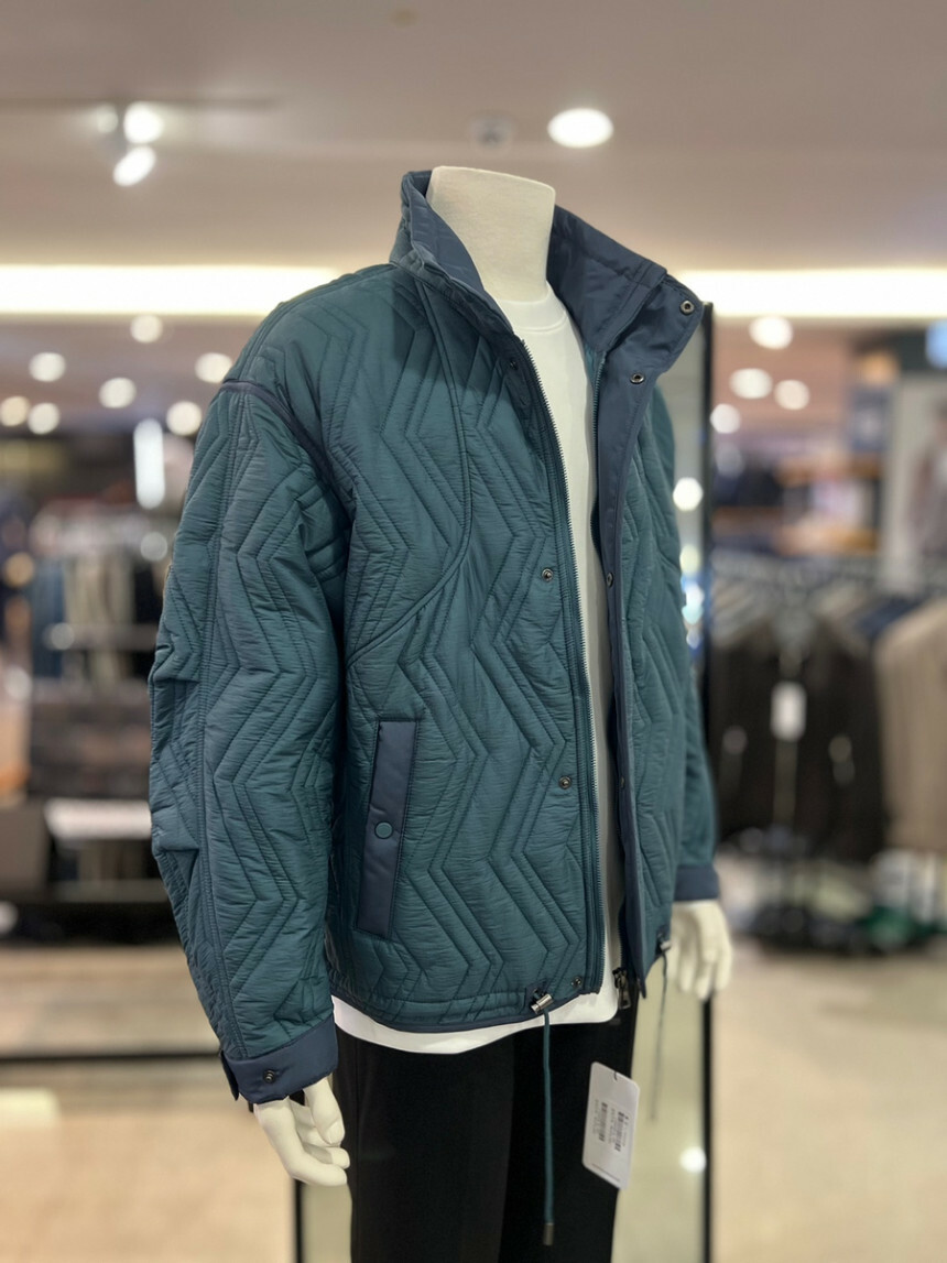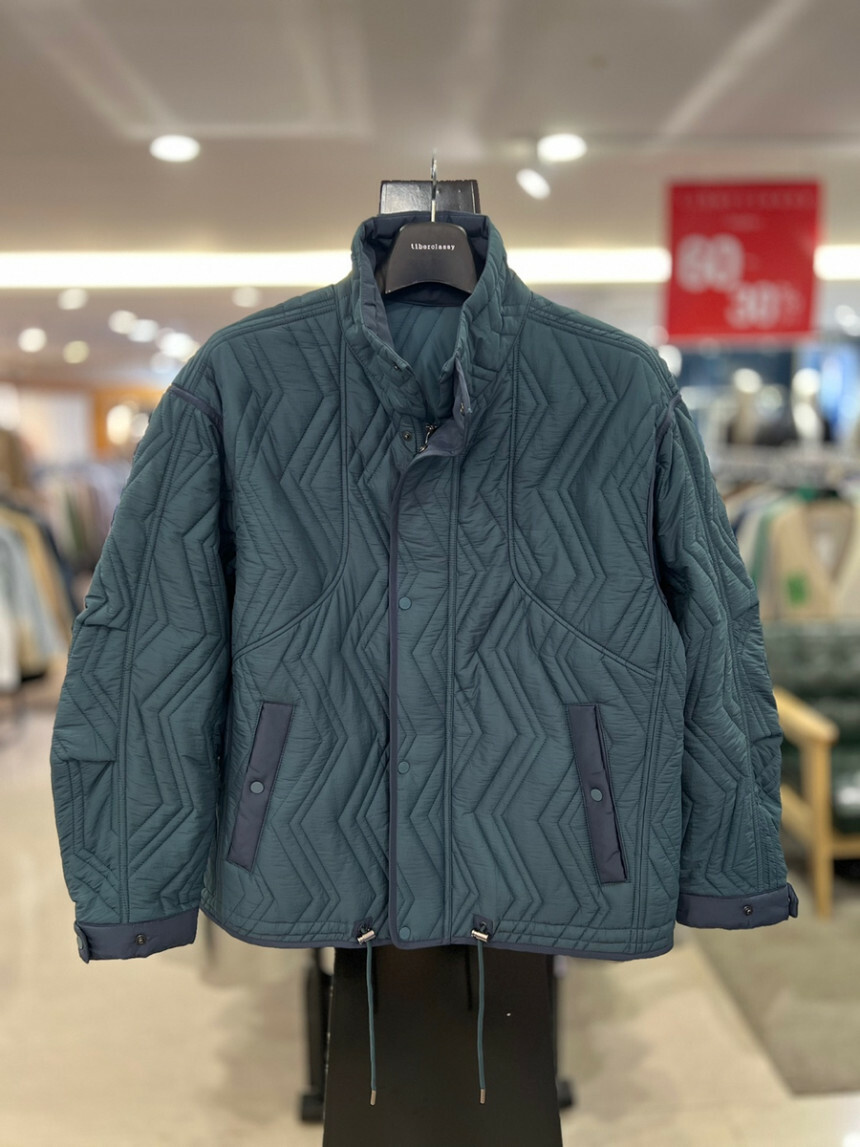 블루 쉐브론 패턴 퀄팅 오버핏 점퍼