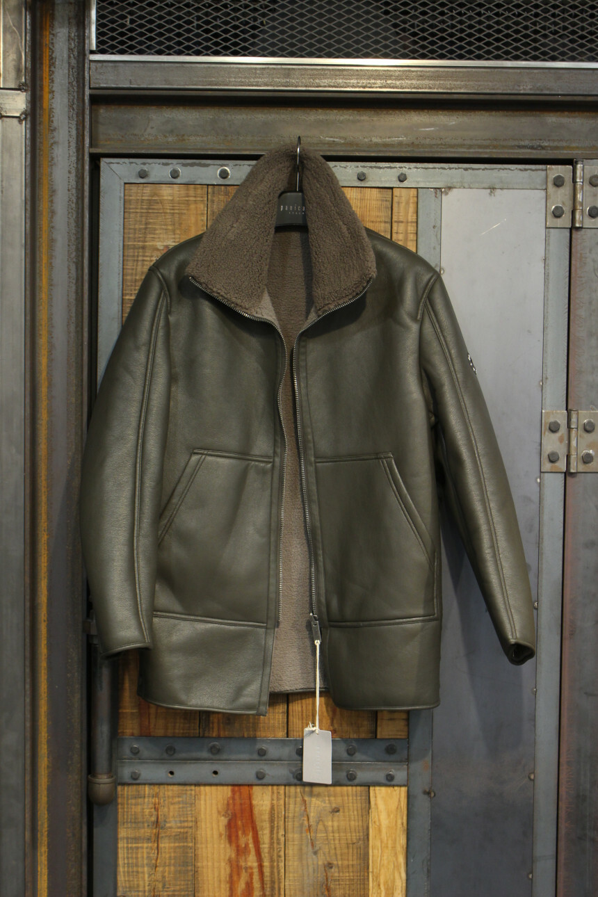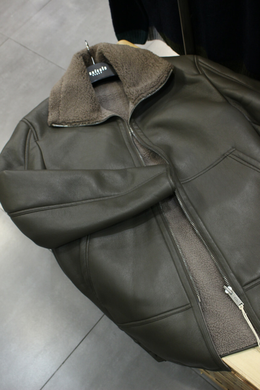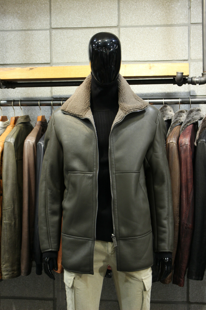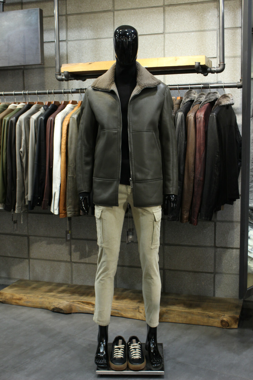 스타일리시한 숏사파리타입의 에코레더 인조가죽무스탕입니다