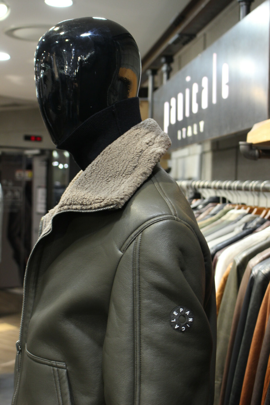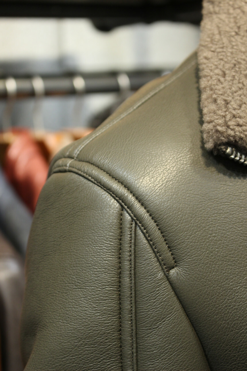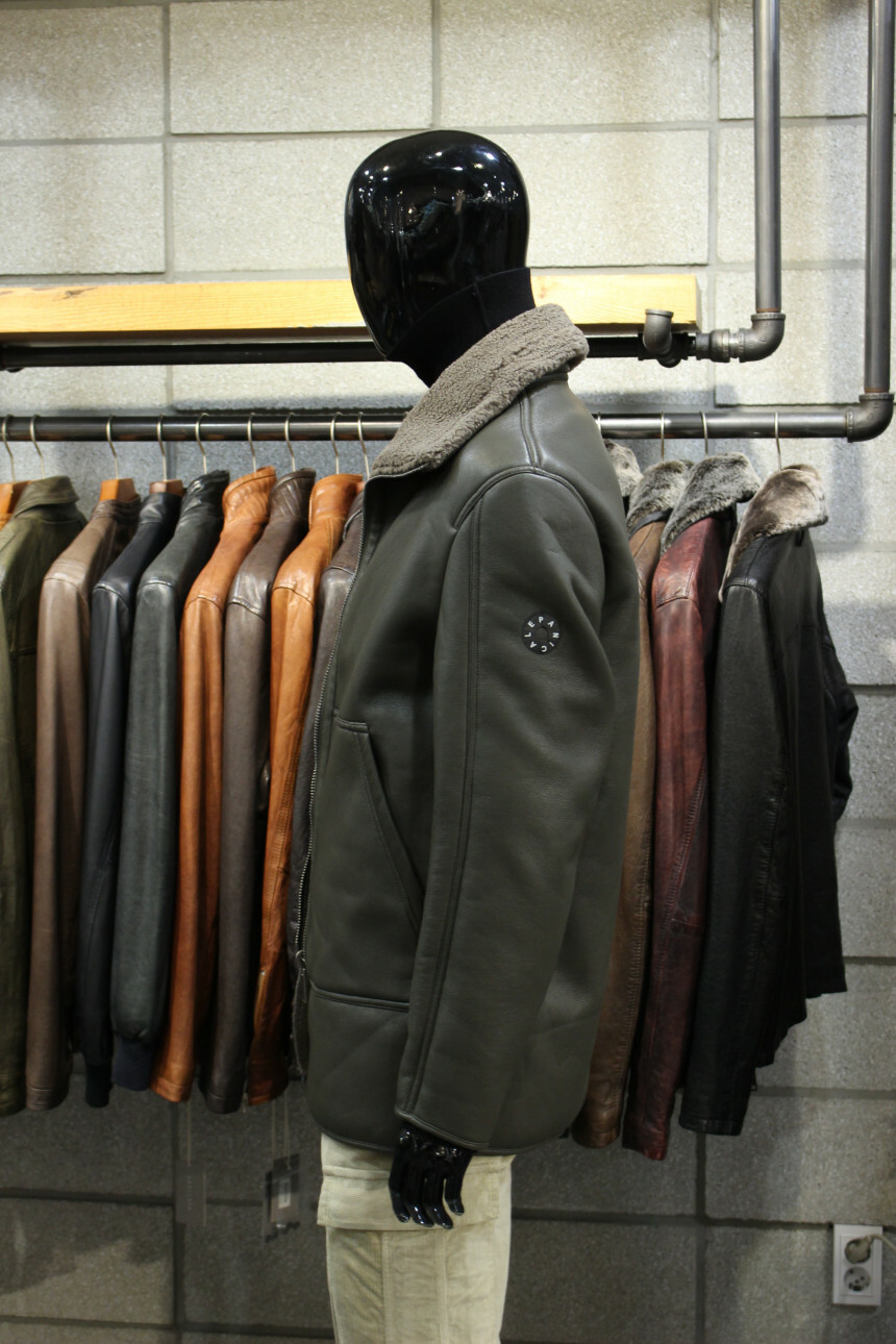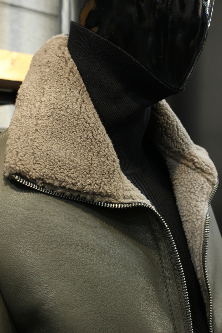스타일리시한 숏사파리타입의 에코레더 인조가죽무스탕입니다