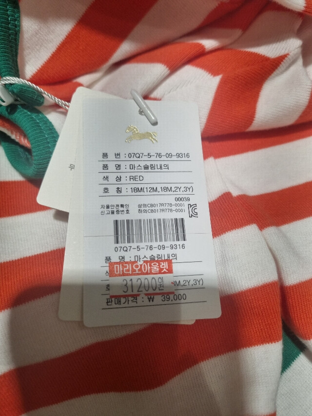 부드러운 면 소재의 내복입니다