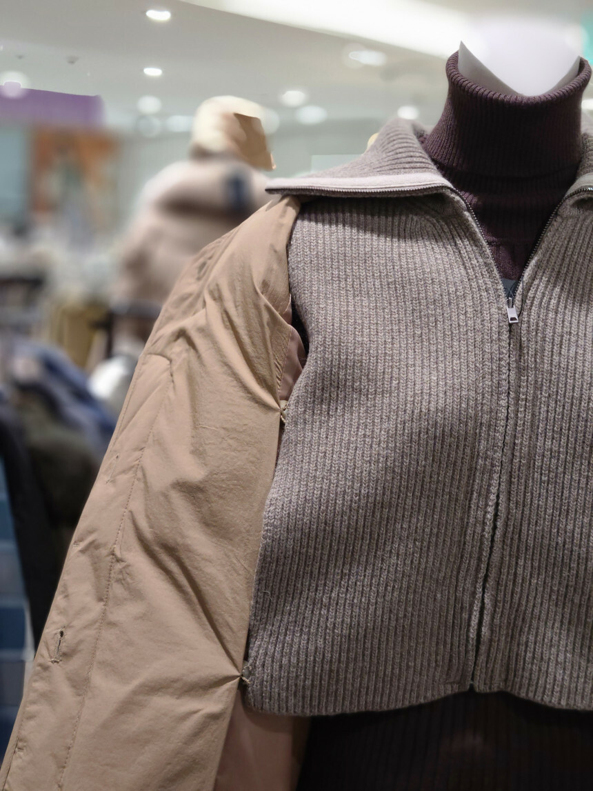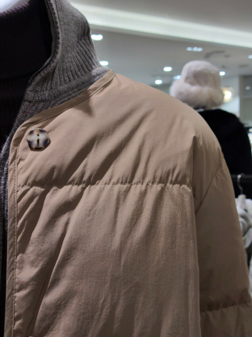 · 겉감 : 나일론 100%, 안감: 폴리에스터 100%, 배색: 울 60%, 나일론 35%, 캐시미어 5%, 충전재: 거위솜털 80%, 거위깃털 20%