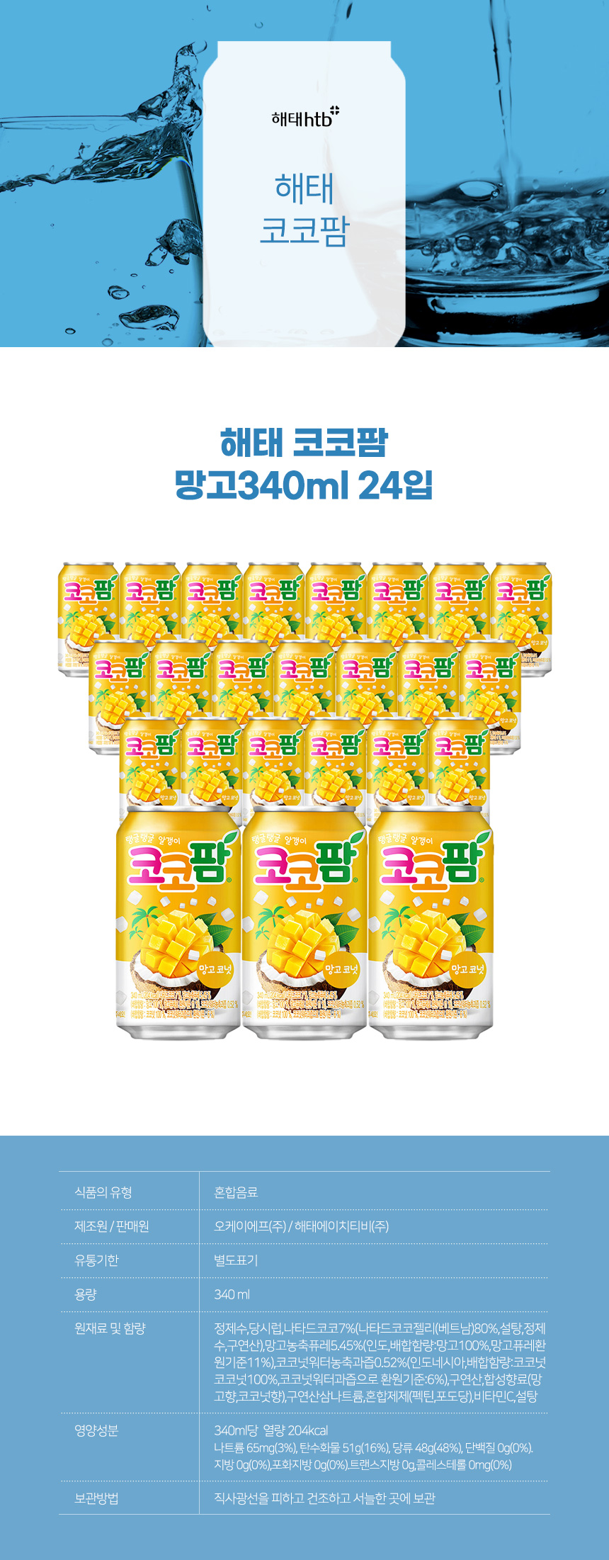 해당 상품은[ 해태 코코팜 망고 340ml 24입 ] 구성의 상품입니다.