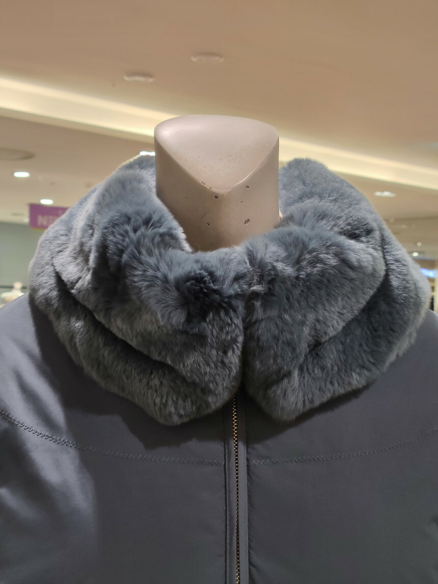 · 겉감 : 폴리에스터 100%, 안감: 폴리에스터 100%, 배색1: 렉스 100%, 배색2: 양가죽 100%, 충전재: 거위솜털 80%, 거위깃털 20%