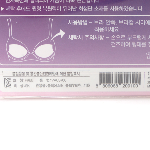 패드 하변에 푸쉬업 설계로 가슴을 더욱 불륨있고 아름답게 만들어 주며