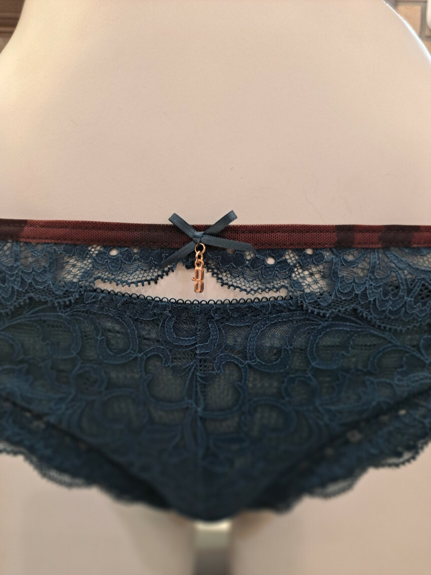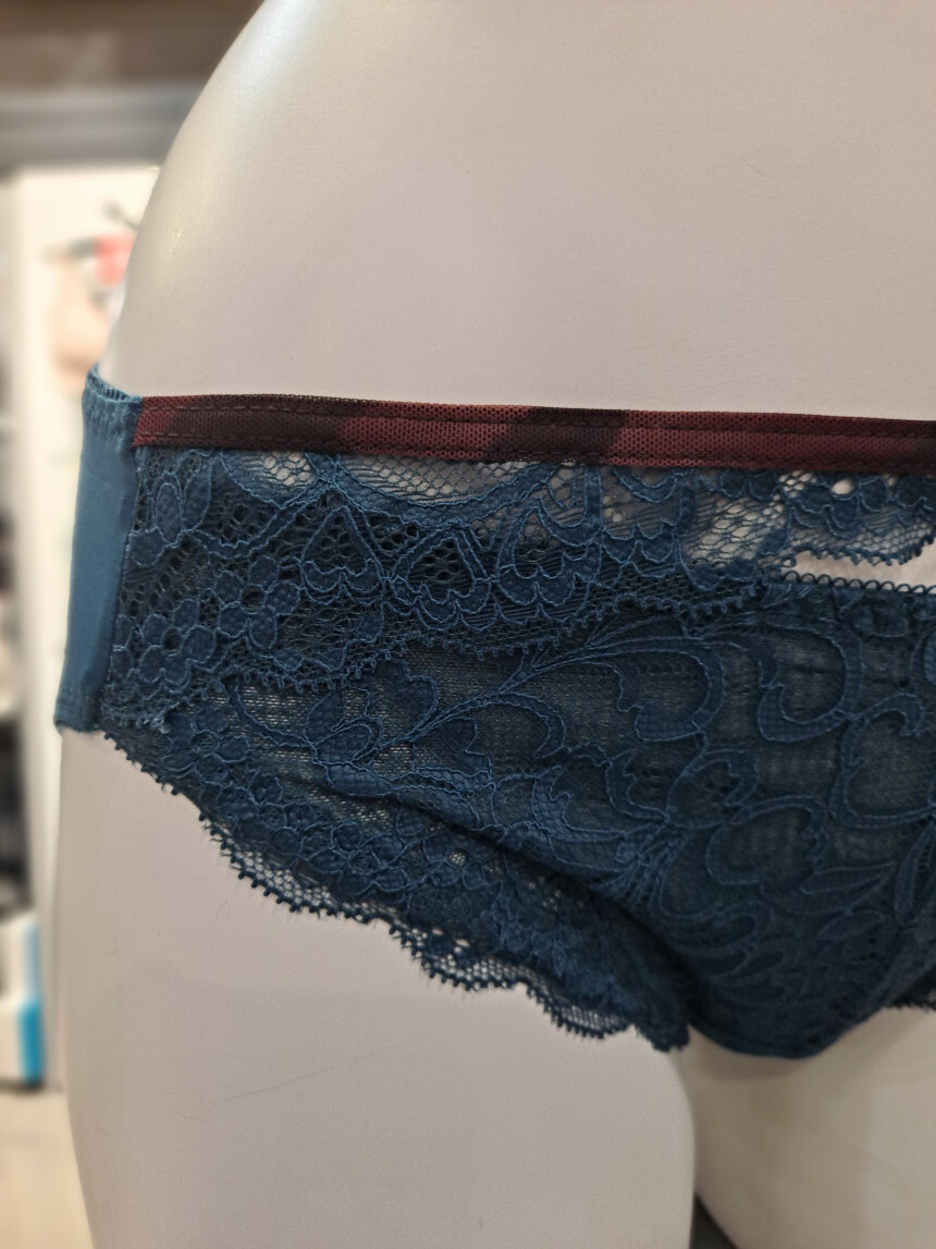청록색의 입체감있는 코드사 레이스와 와인색의 지브라패턴 라인닝 포인트가 매치되어 유니크하고 세련된 느낌의 제품