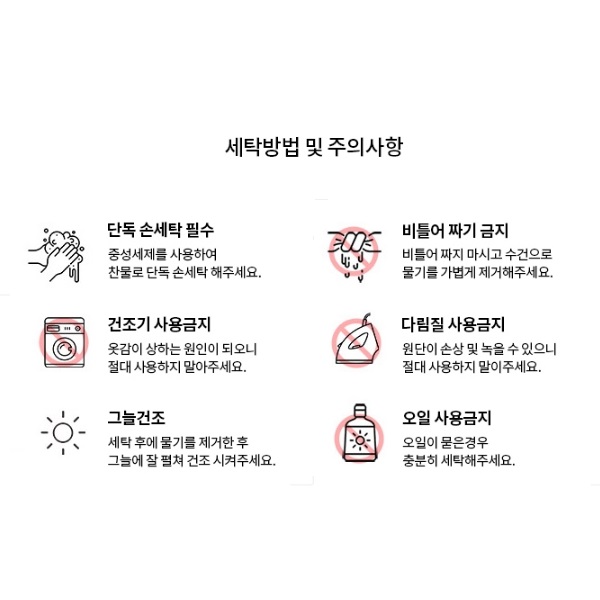 세탁방법 및 취급시 주의사항 : 취급상 주의사항 참고해주세요