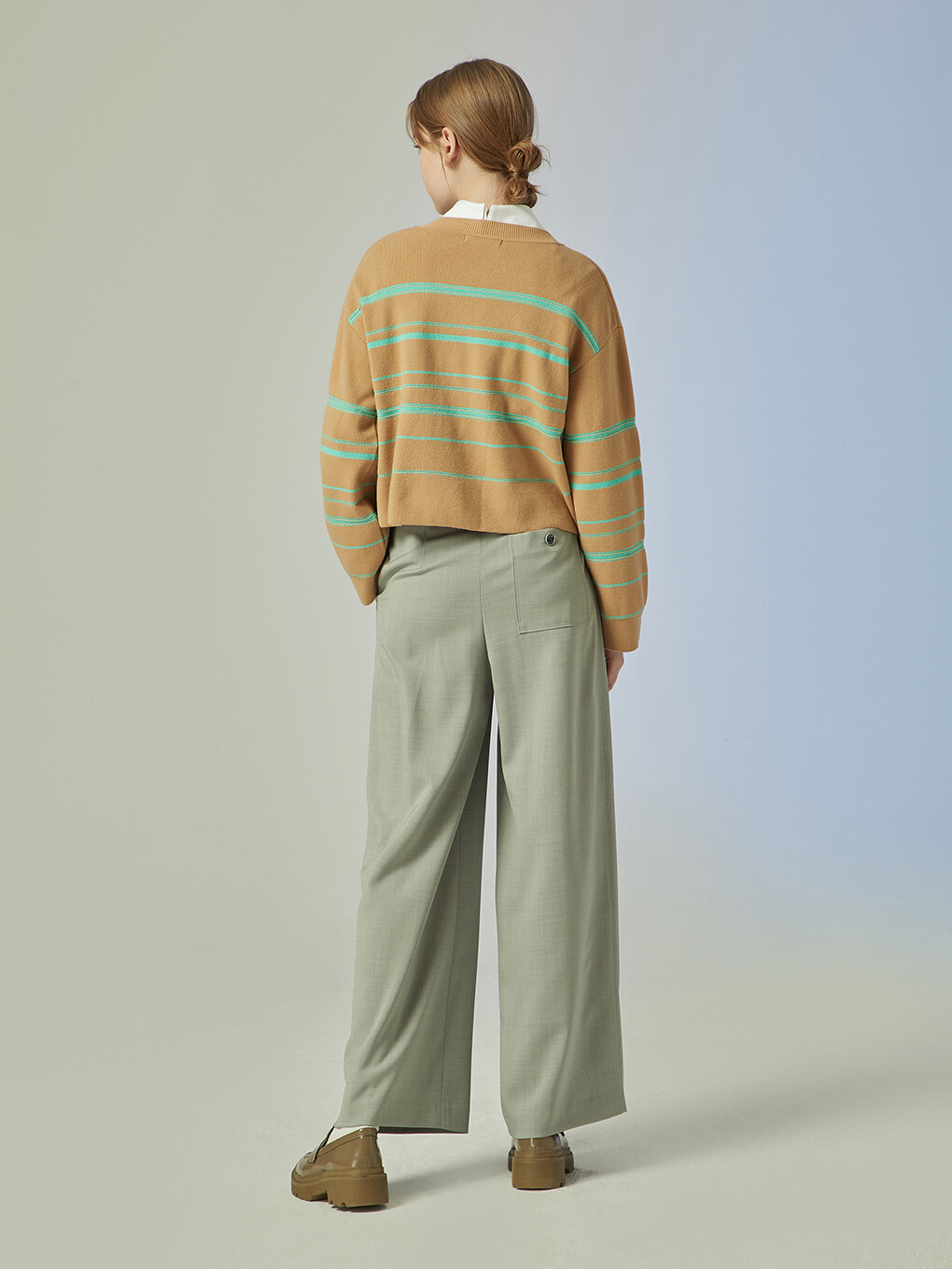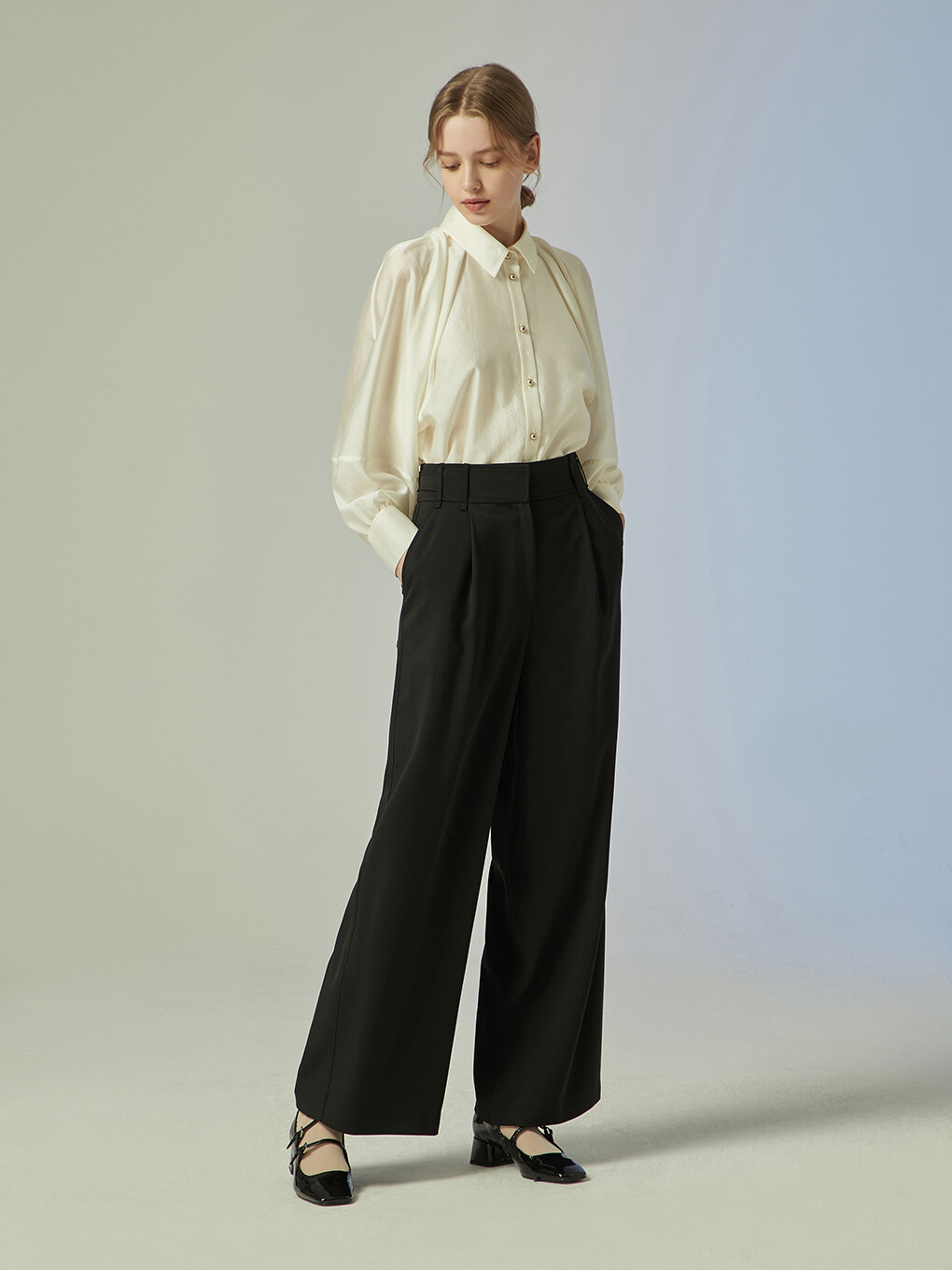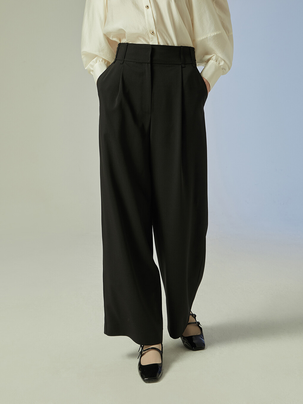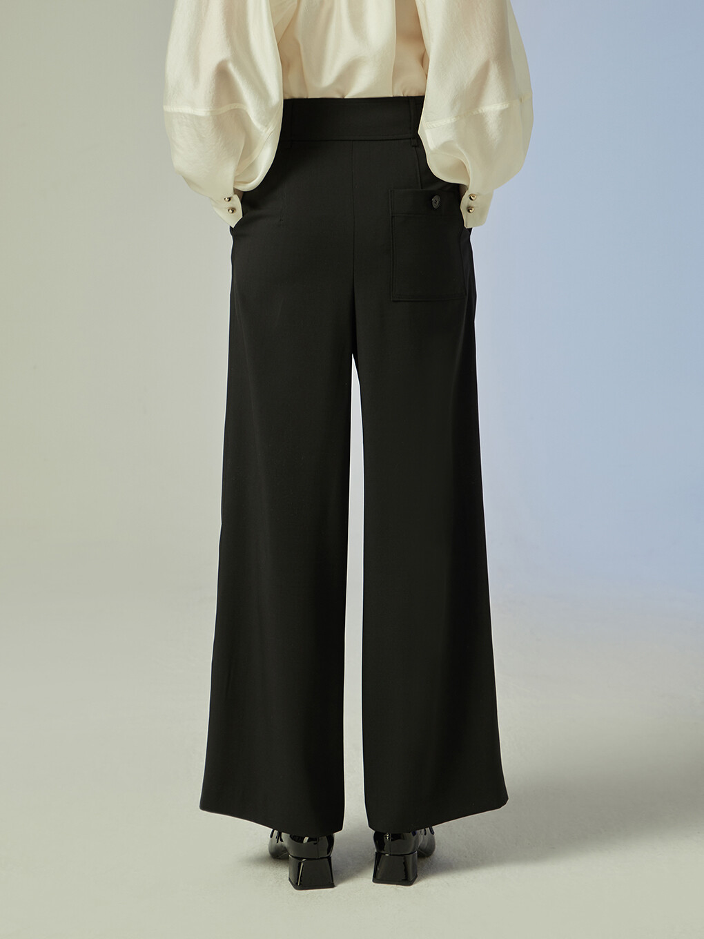 - 허리단에 비조 디테일을 준 롱 와이드 팬츠입니다.