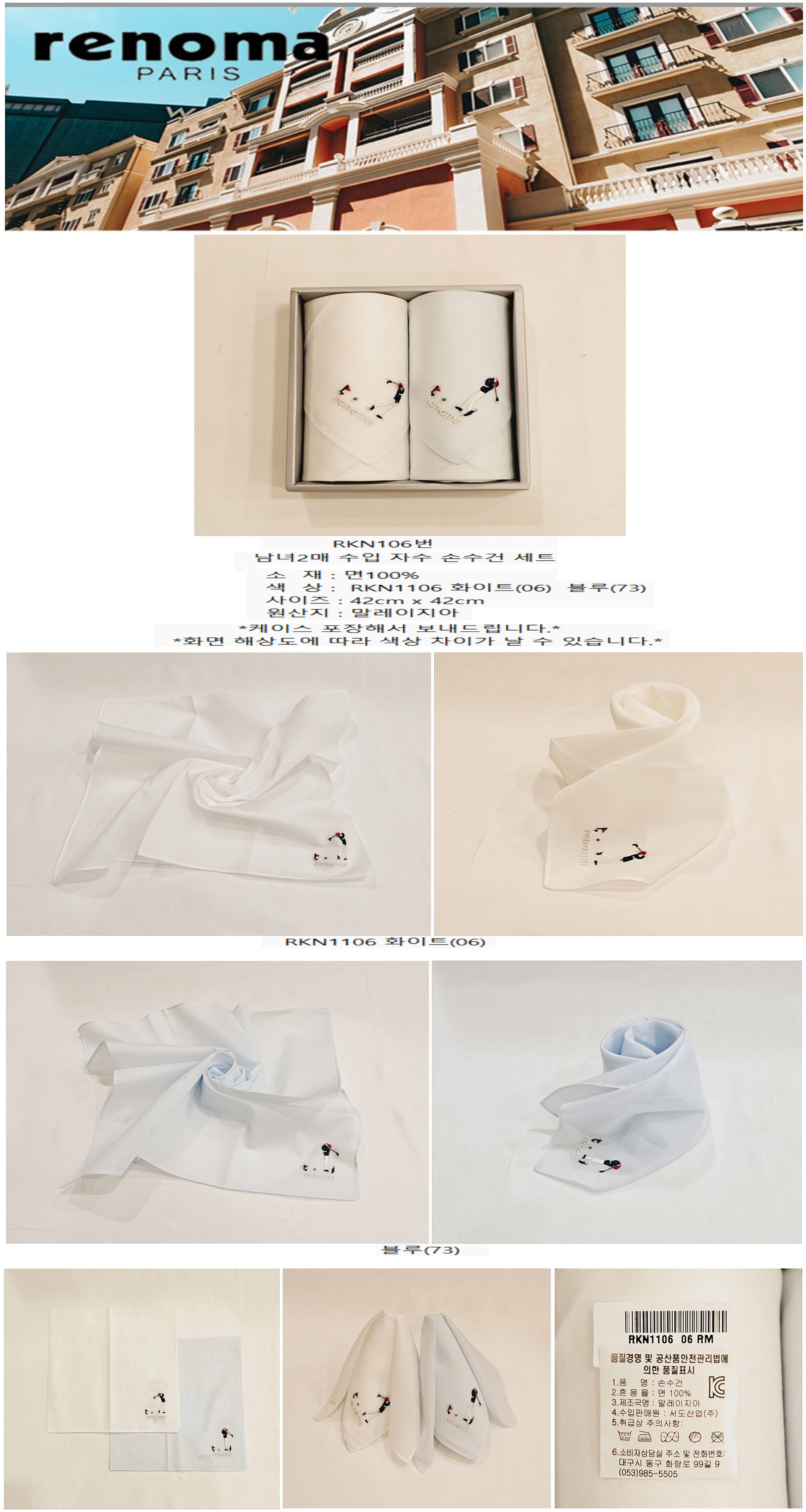 RKN106번_남녀2매 수입 자수 손수건 세트