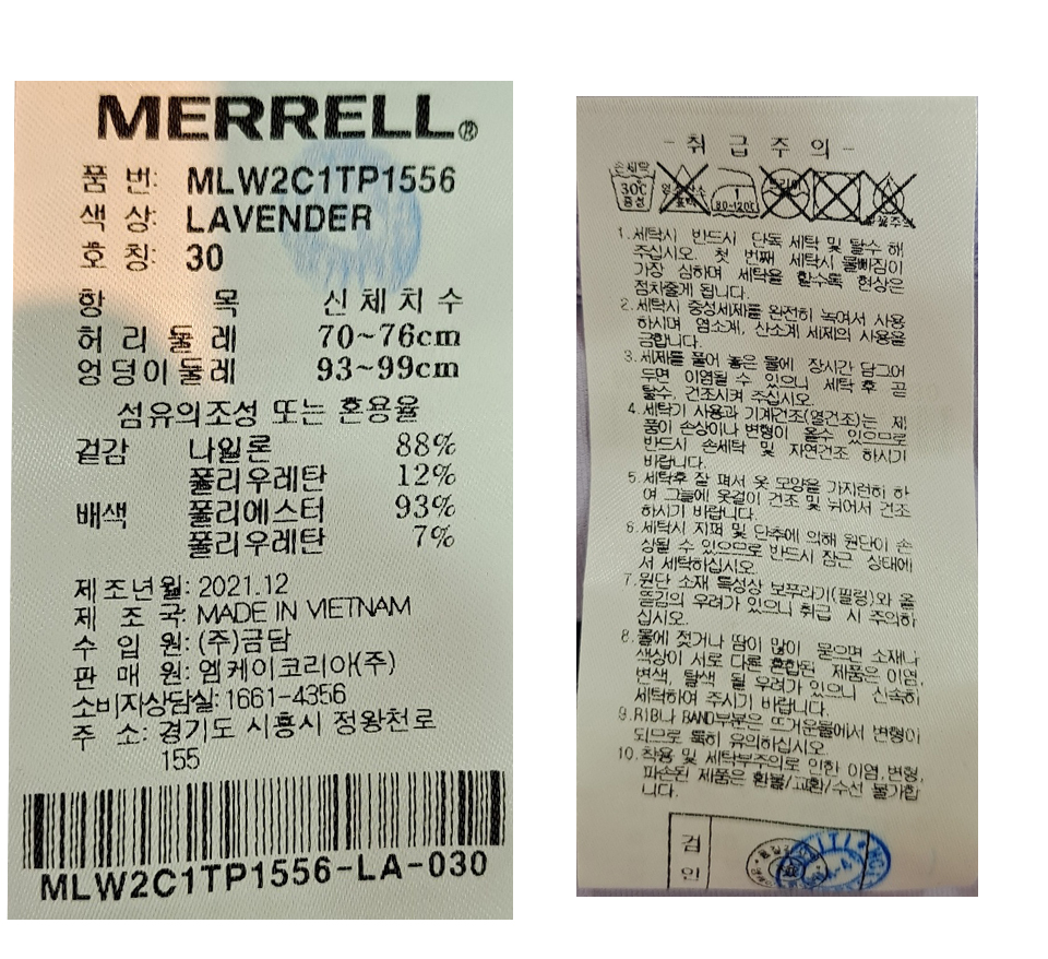 세탁방법 및 취급시 주의사항 : 상세 참조