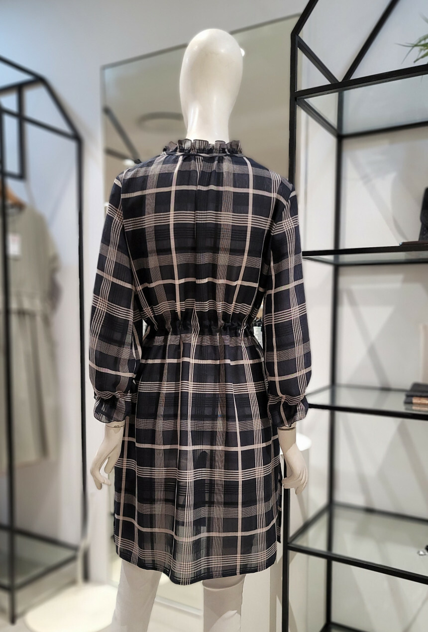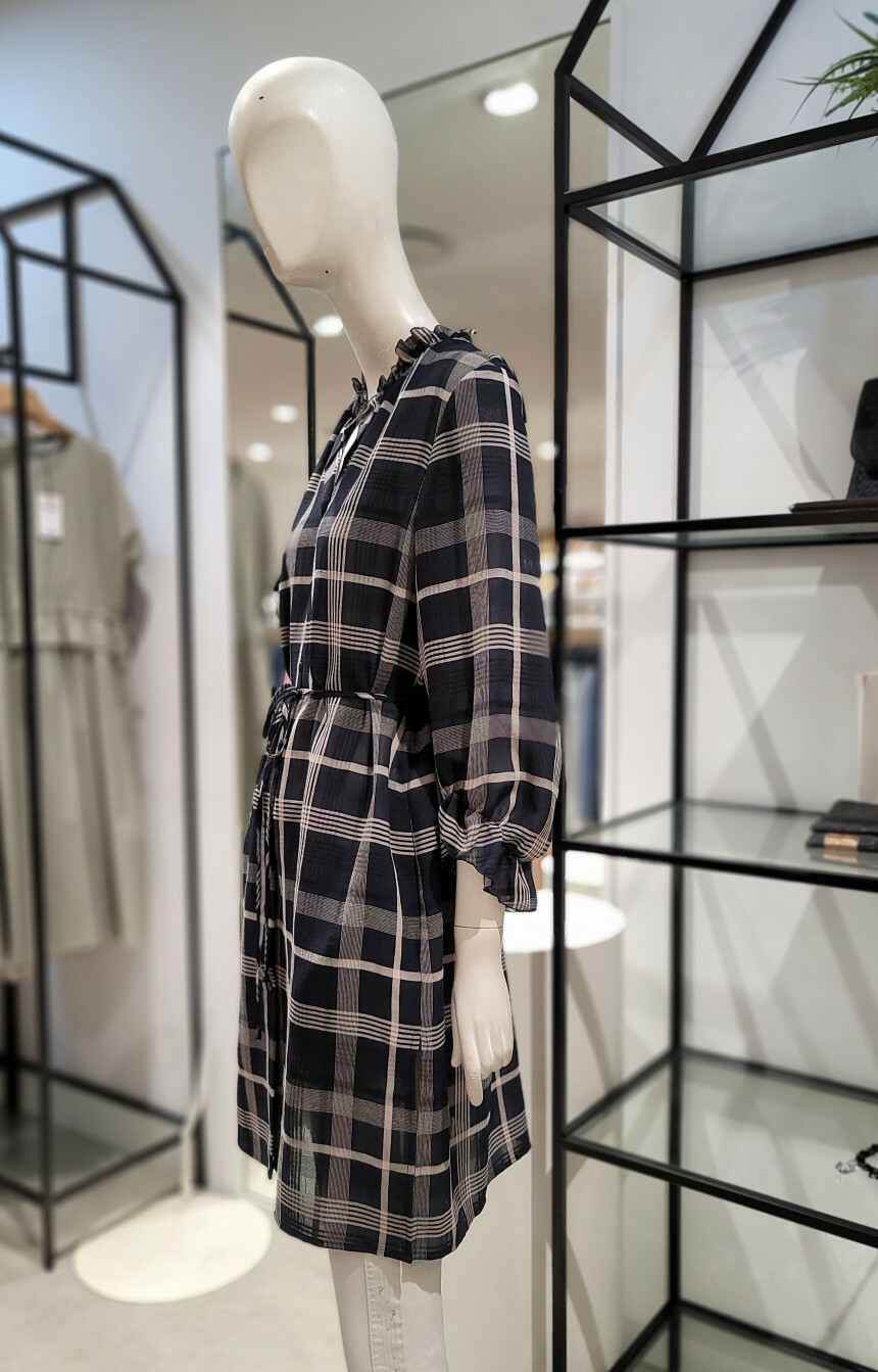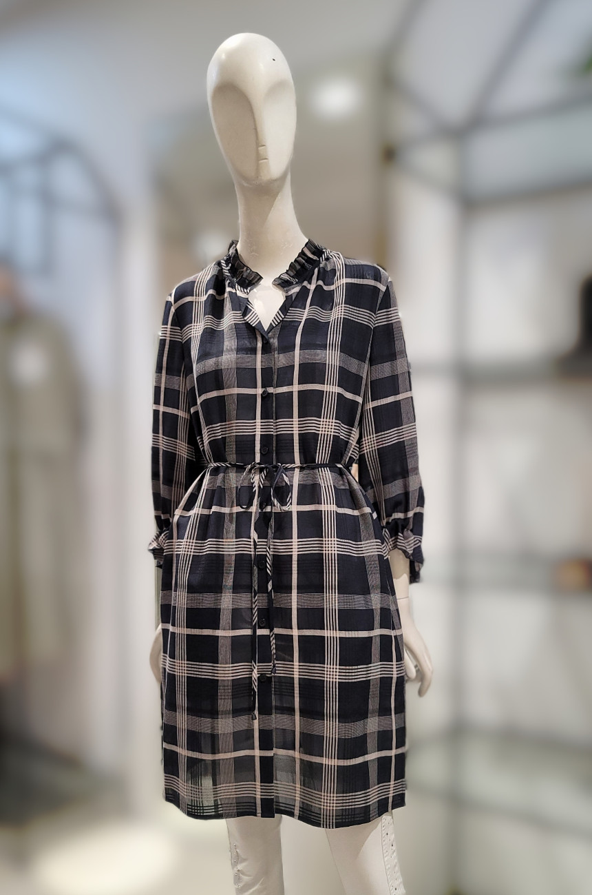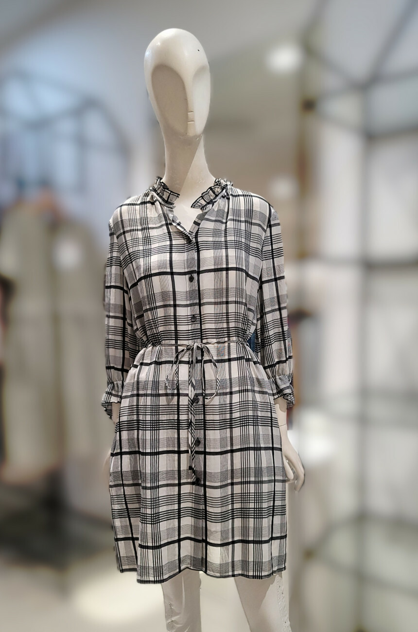 루주핏으로 깔끔하게 떨어지는 핏감이 예쁘고 체크 패턴과 러플 포인트로 여성스럽고 세련된 시원한 아이템입니다.