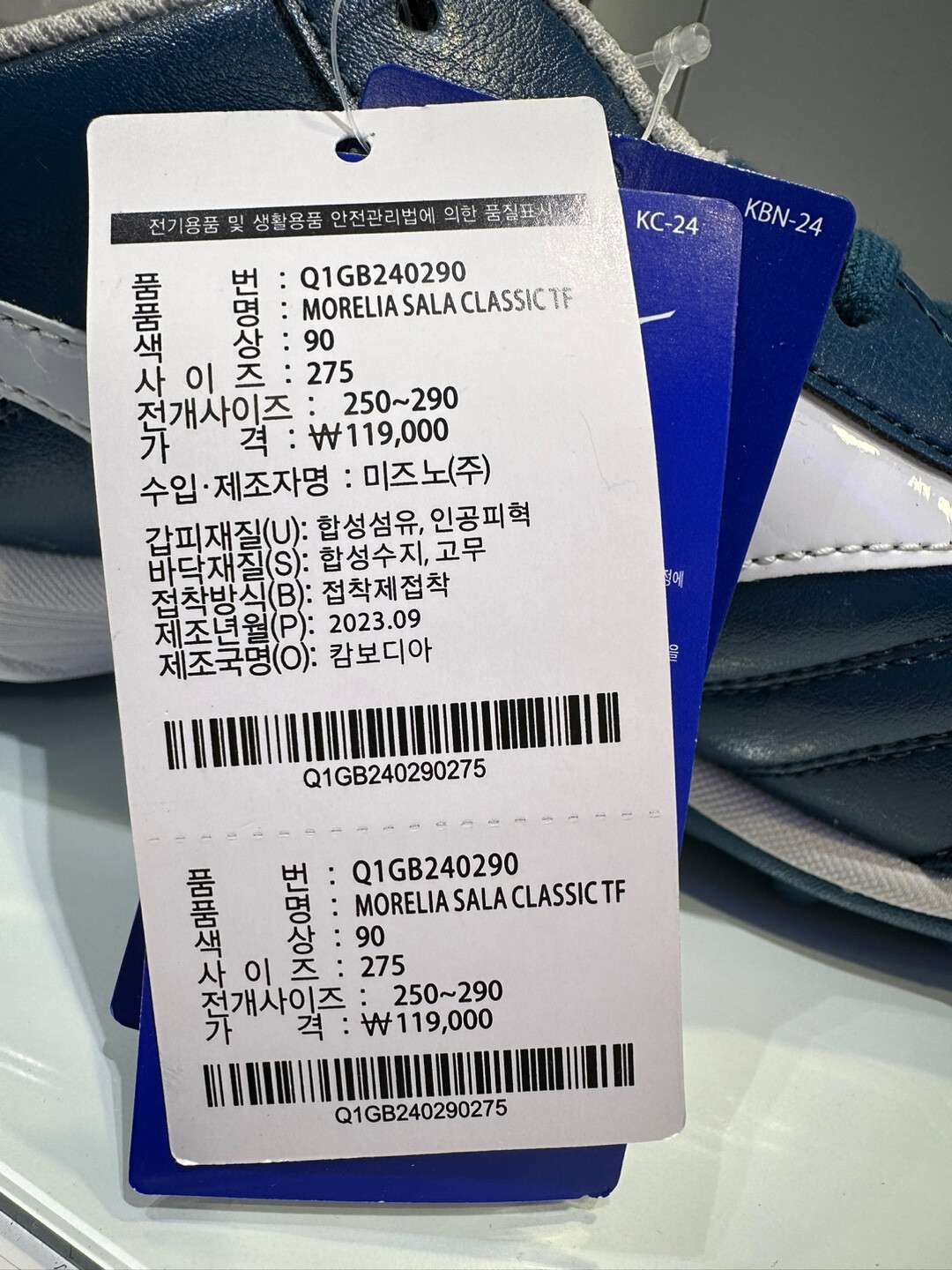 미즈노 모렐리아 살라 클래식 TF 풋살화 Q1GB2402