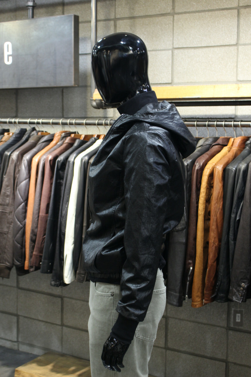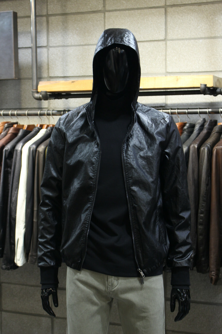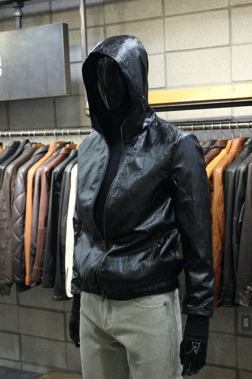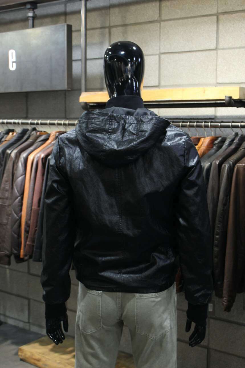 캐주얼하게 연출하기 좋은 인조가죽 후드블루종입니다