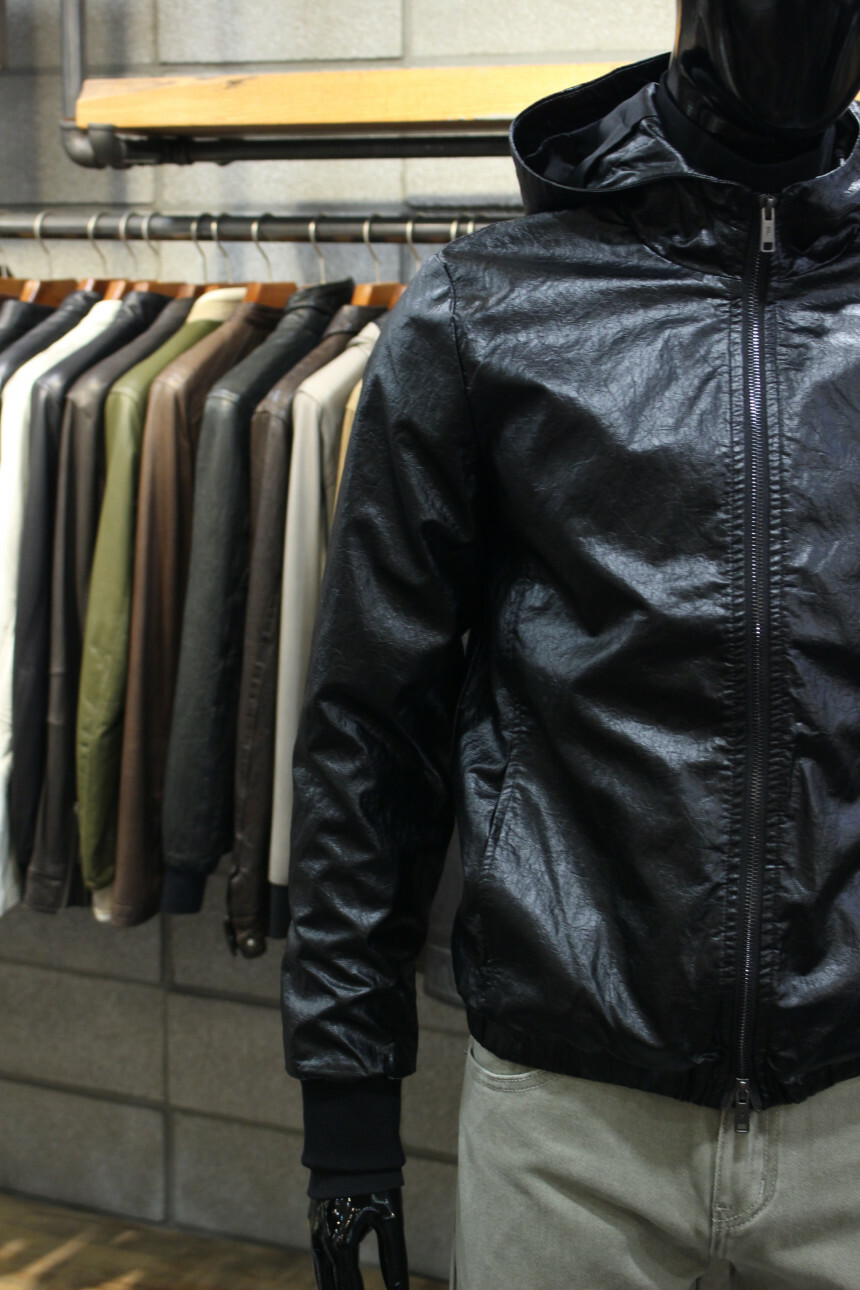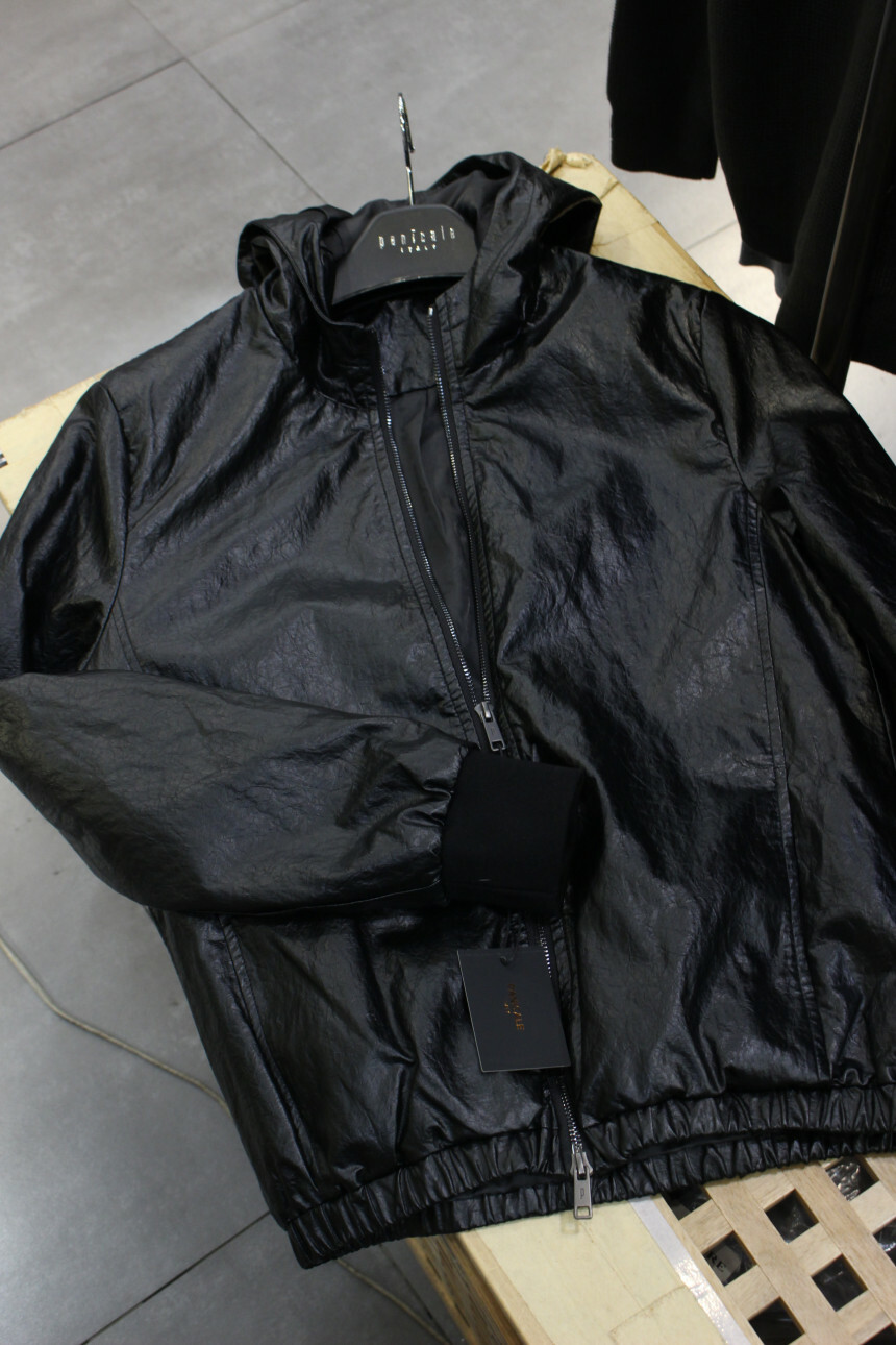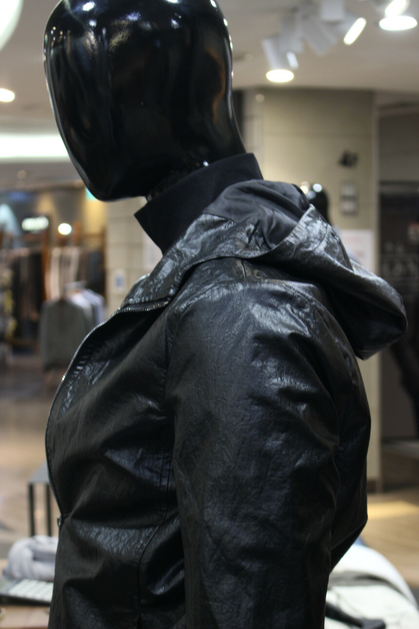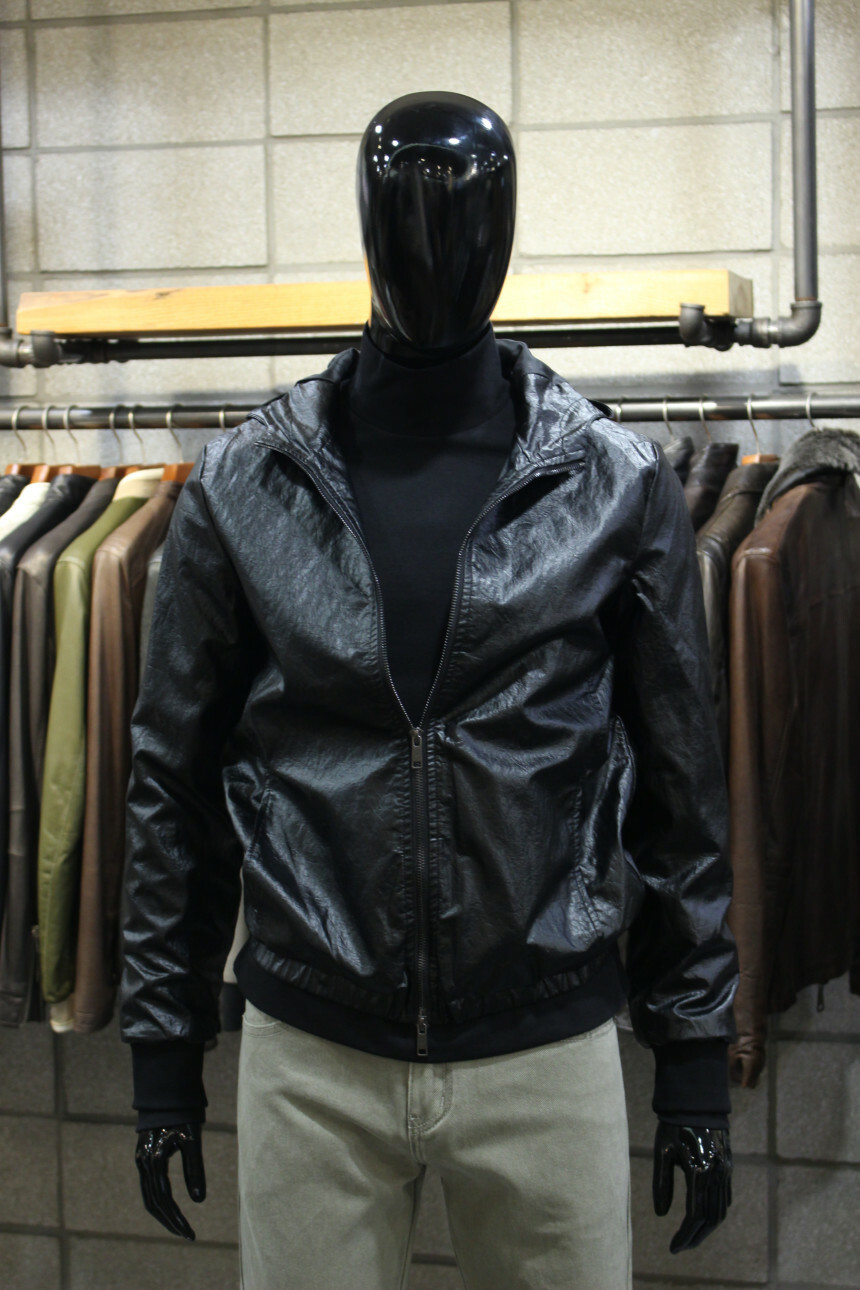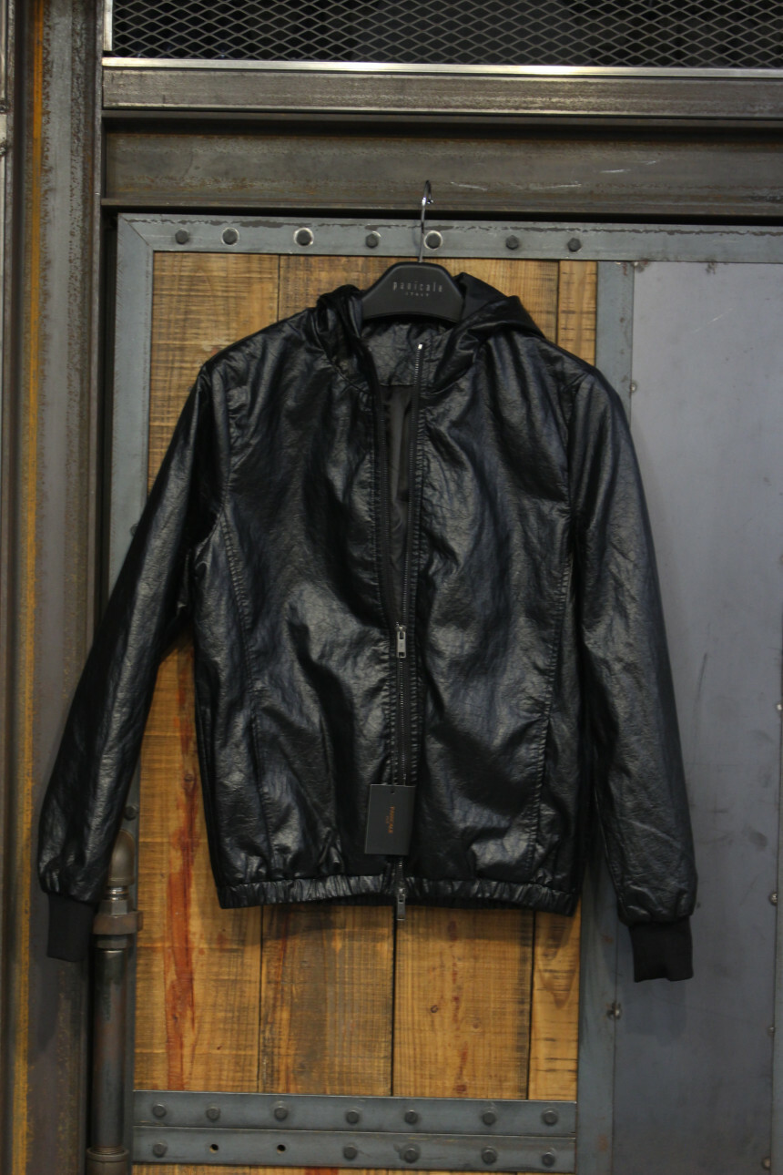 캐주얼하게 연출하기 좋은 인조가죽 후드블루종입니다