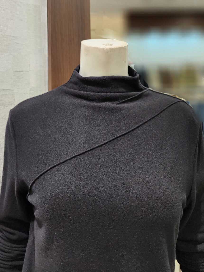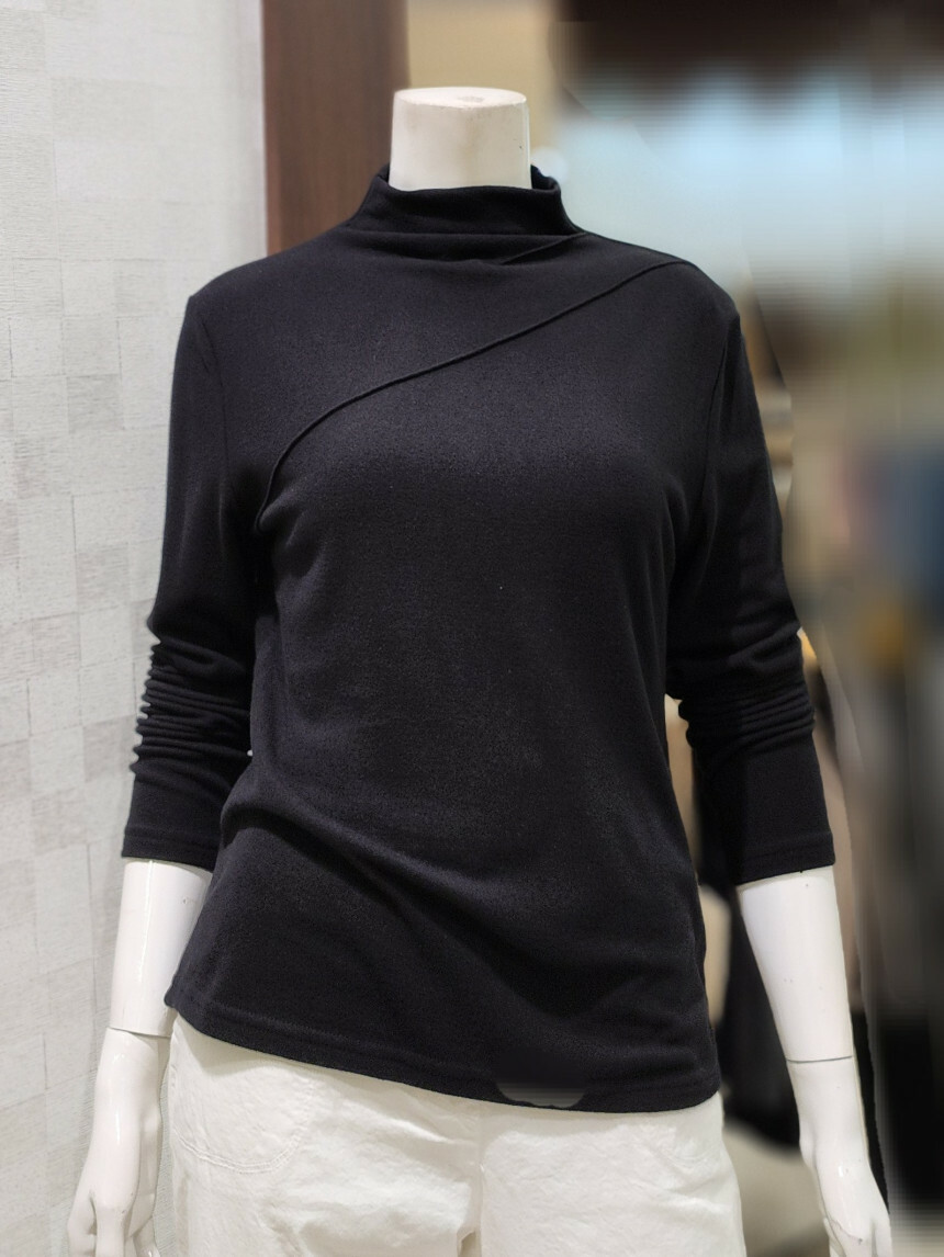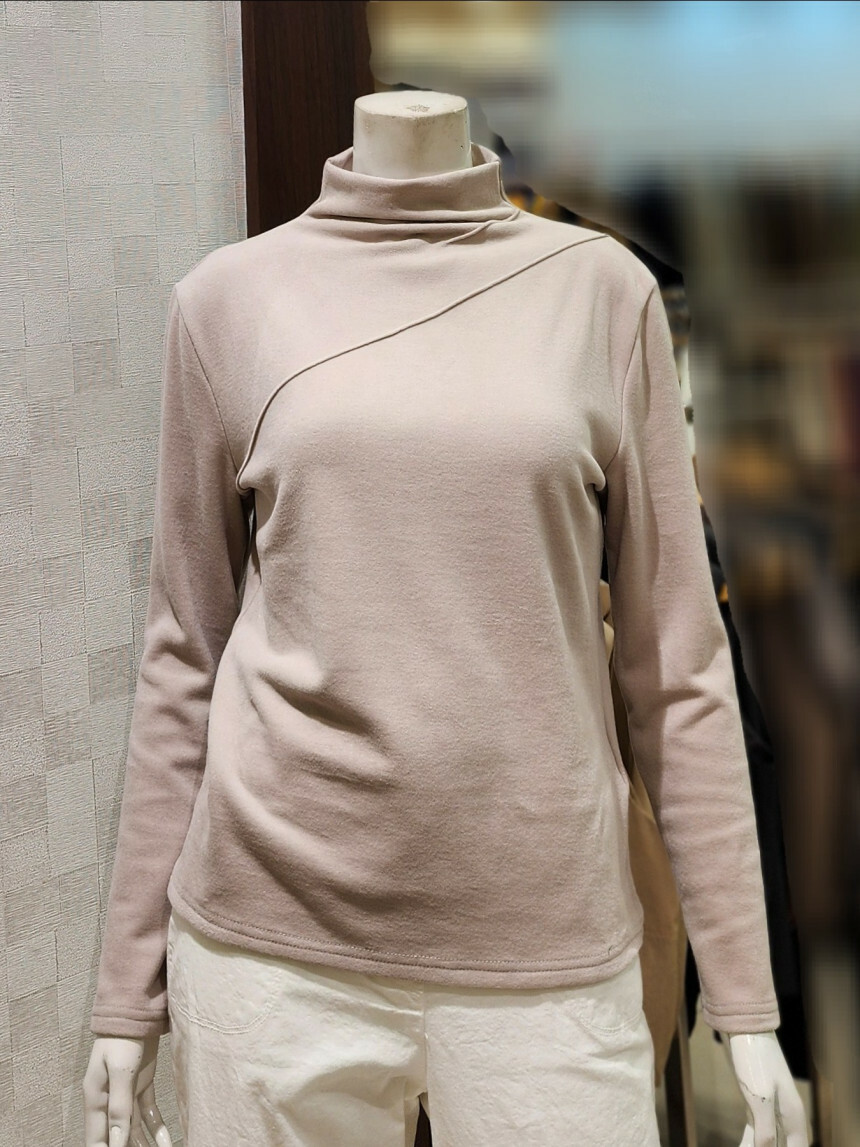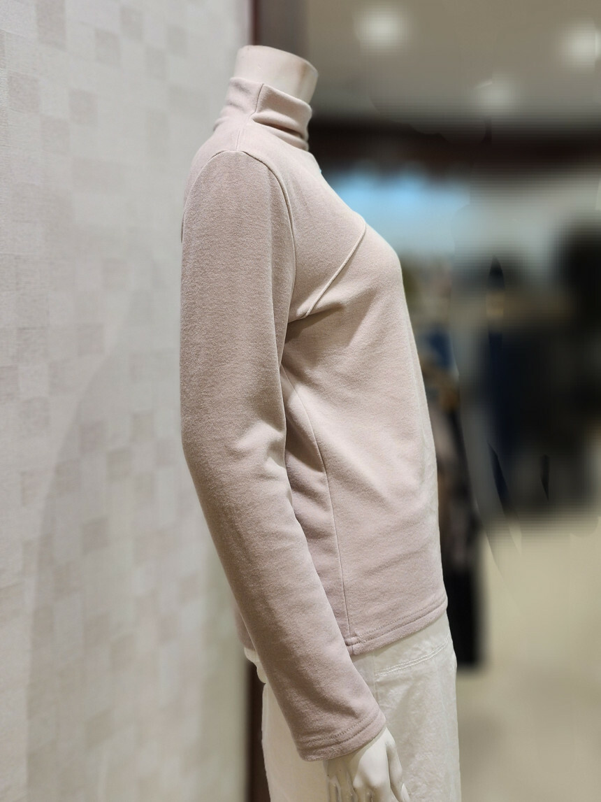 터들넥. 목이 꽉 조이지 않아요. 사선 박음질 포인트.