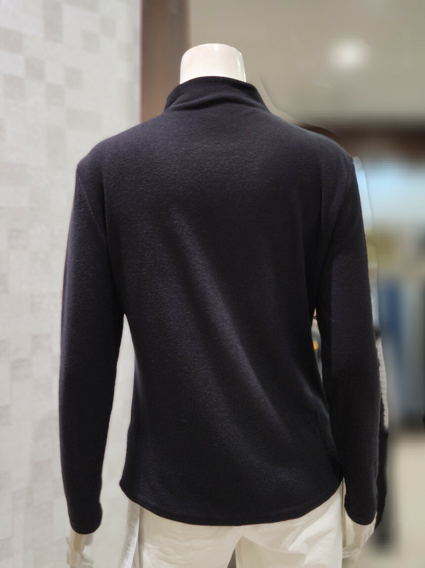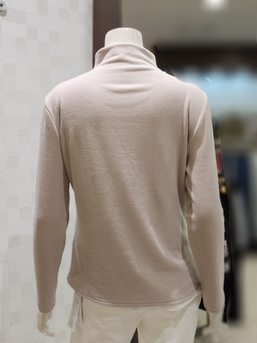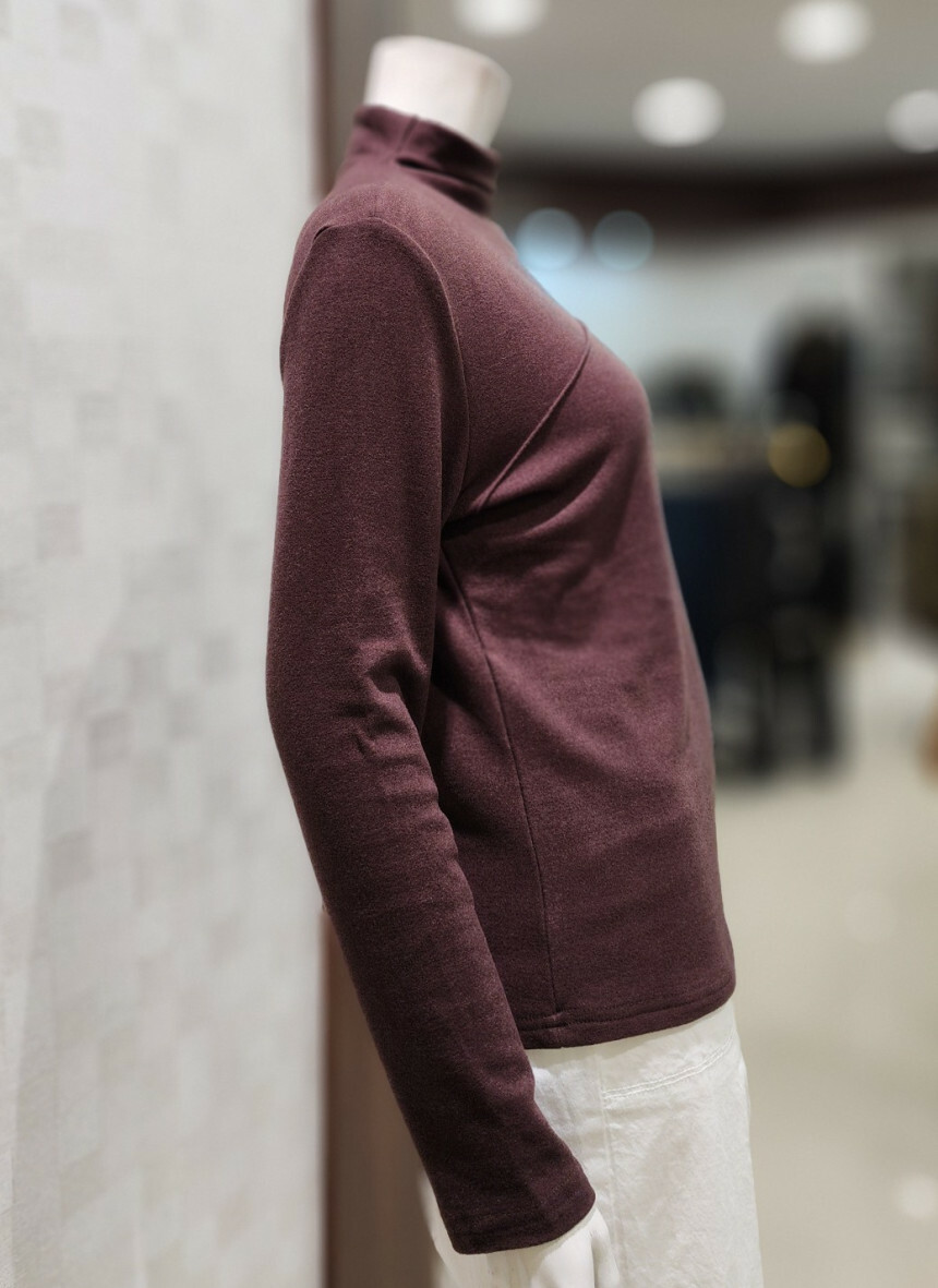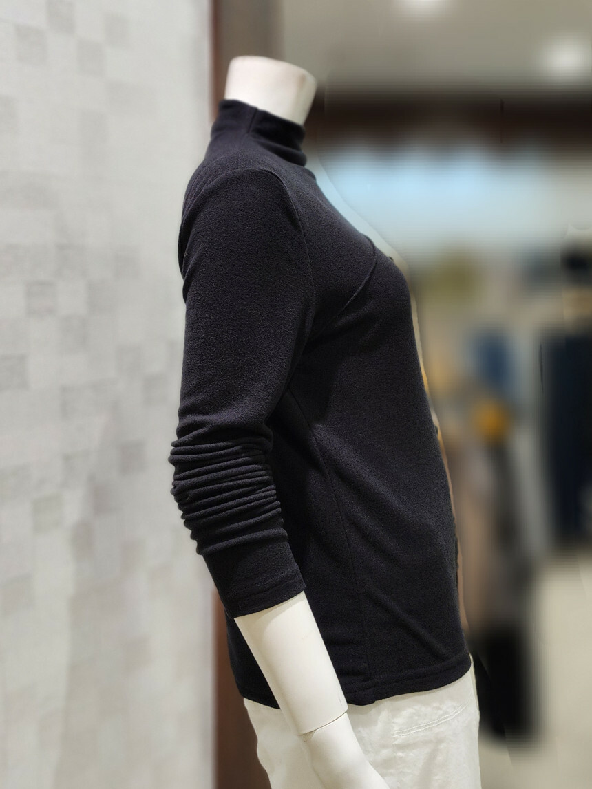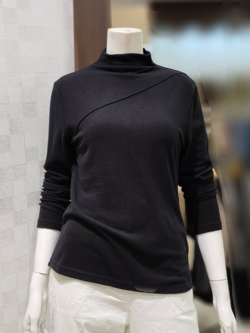 터들넥. 목이 꽉 조이지 않아요. 사선 박음질 포인트.