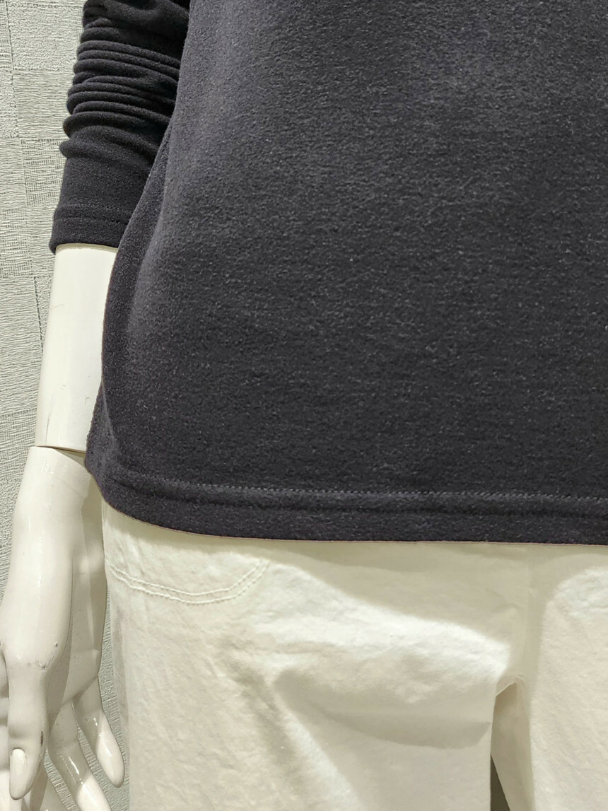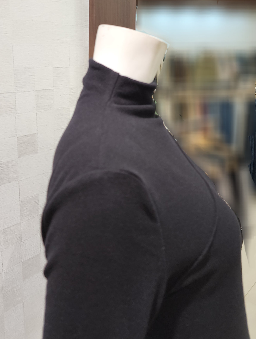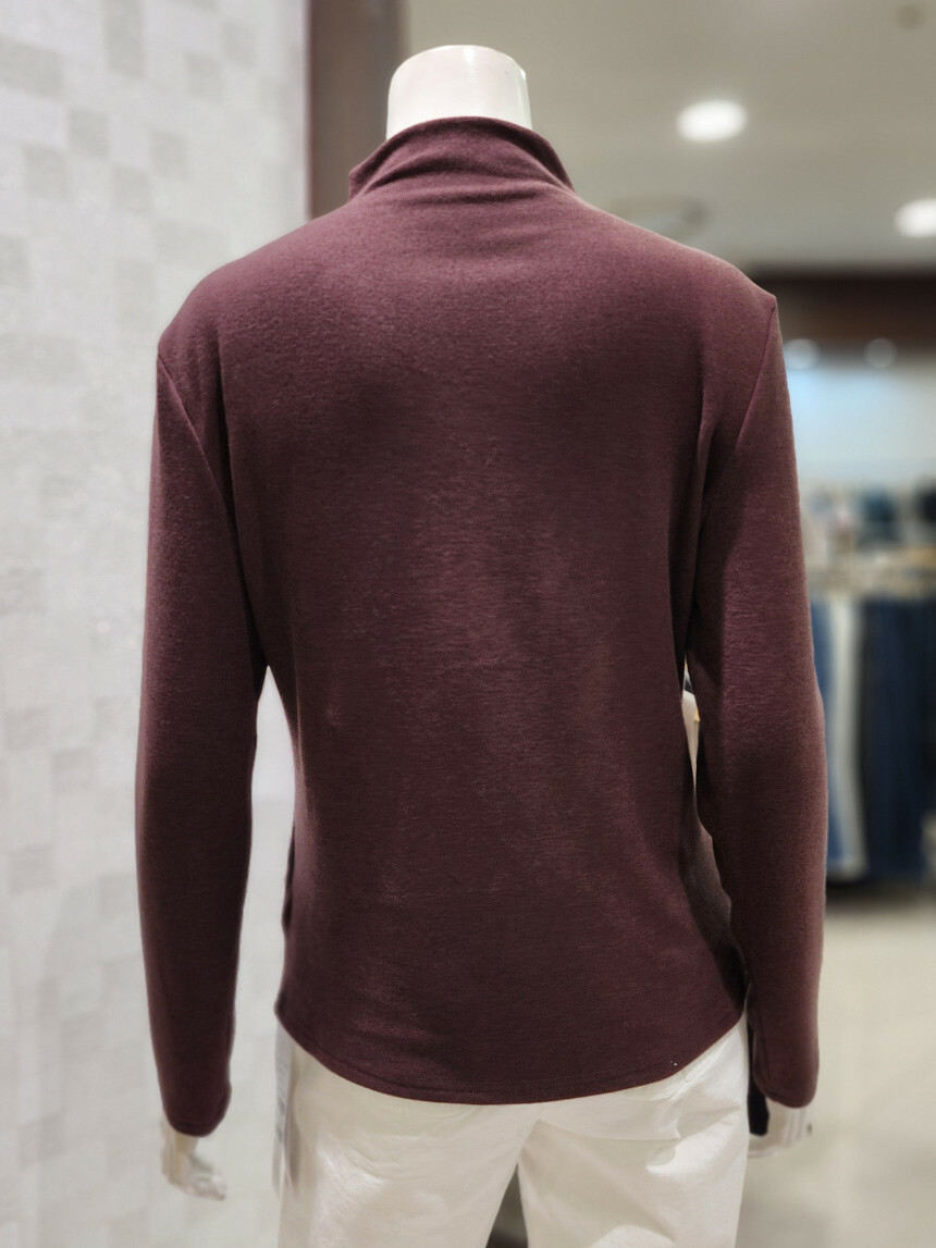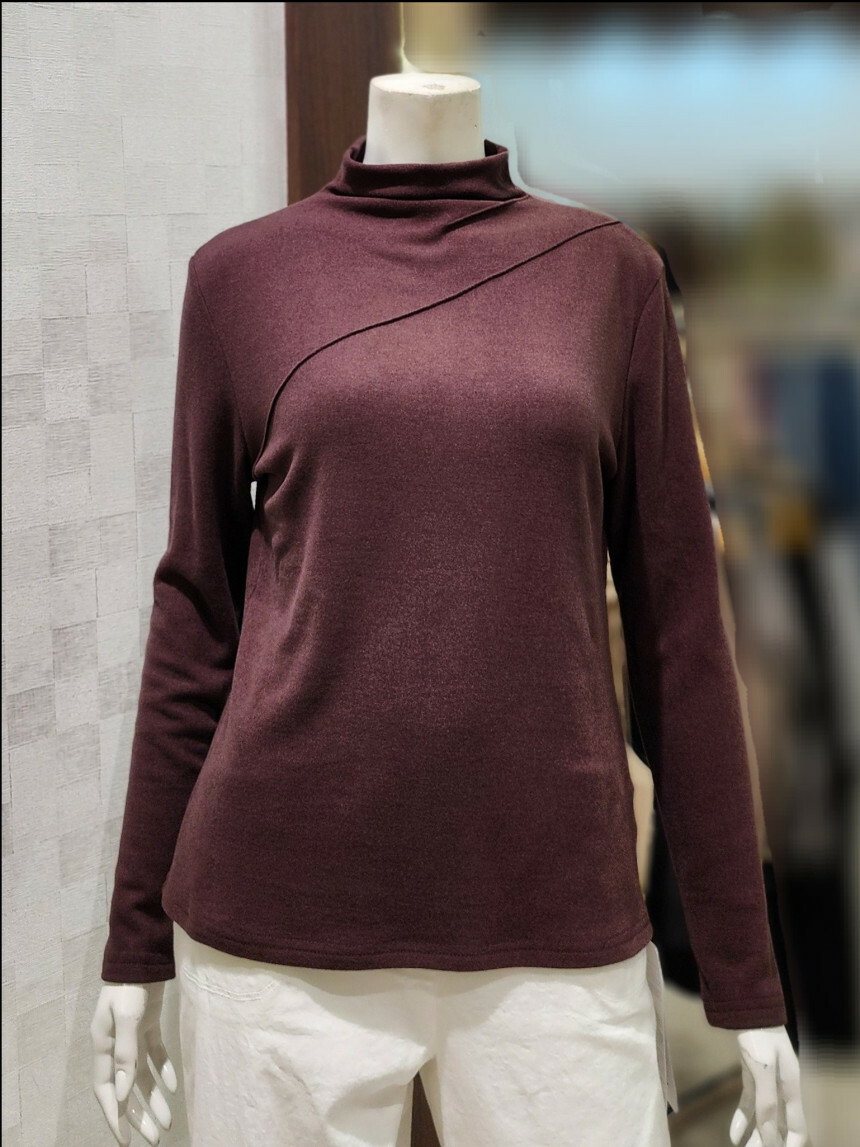 터들넥. 목이 꽉 조이지 않아요. 사선 박음질 포인트.