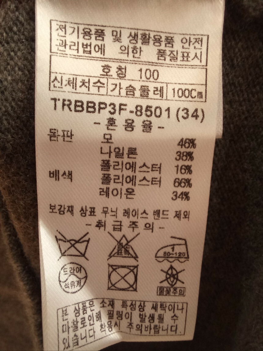 울 혼용 46%, 나일론과 폴리혼방으로 짱짱한 짜임은 물론