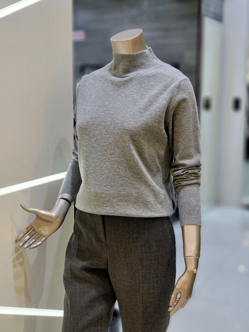 울, 캐시미어 블렌드 소재에 하프 넥 디자인이