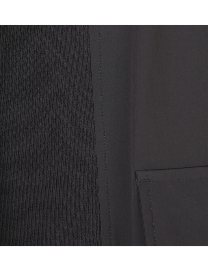 양쪽에 덧댄 우븐 원단은 적당한 스트레치가 있어 편안하게 착장이 가능