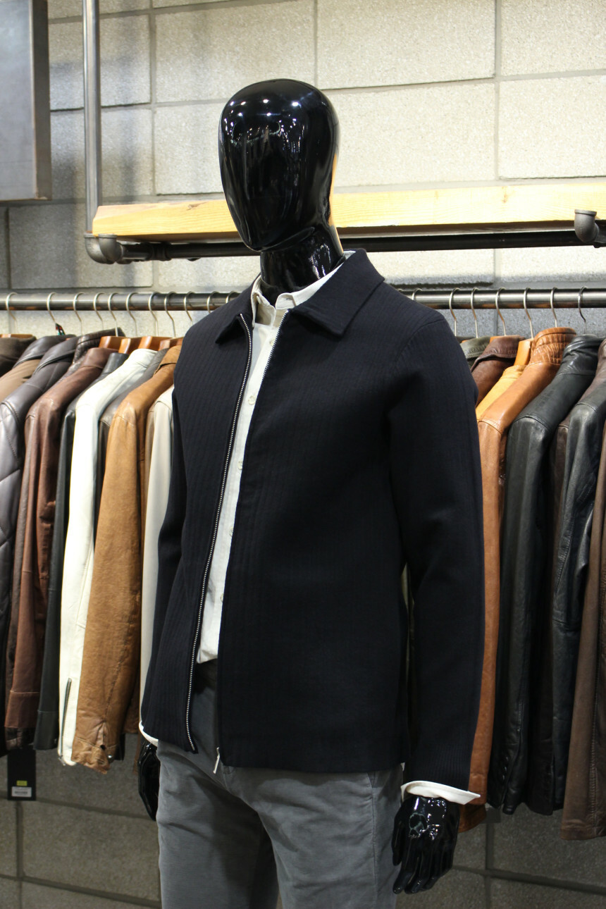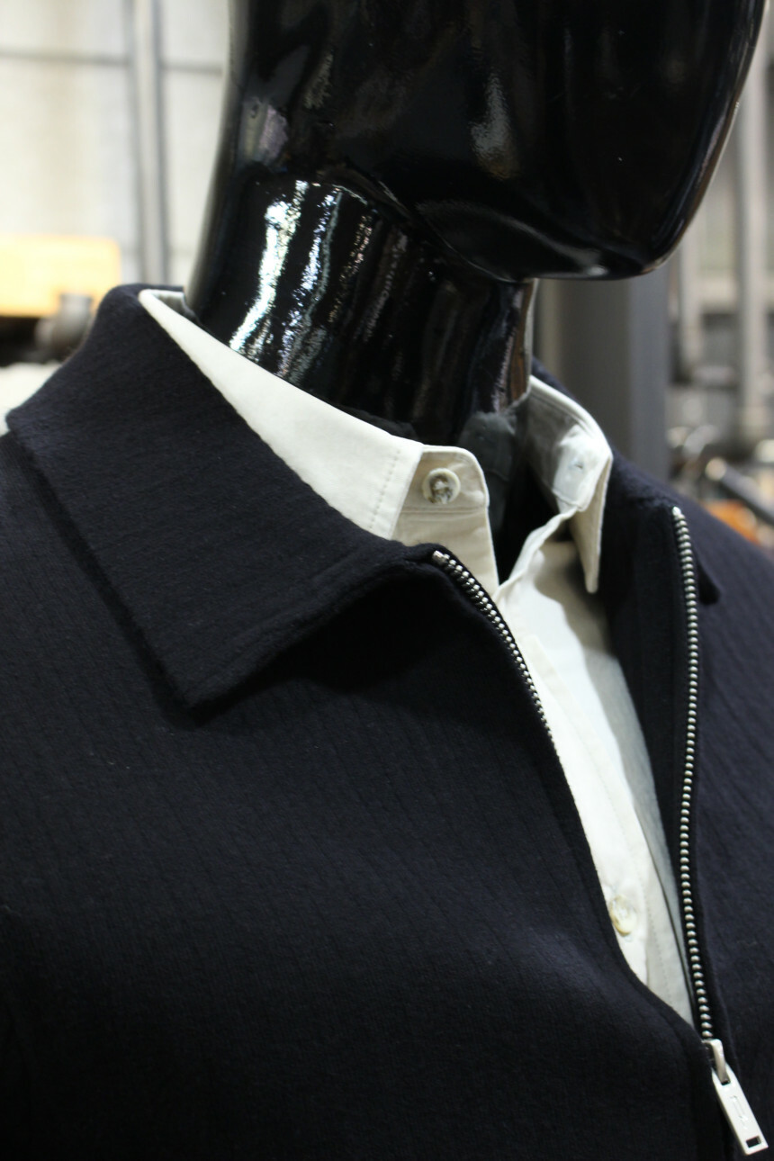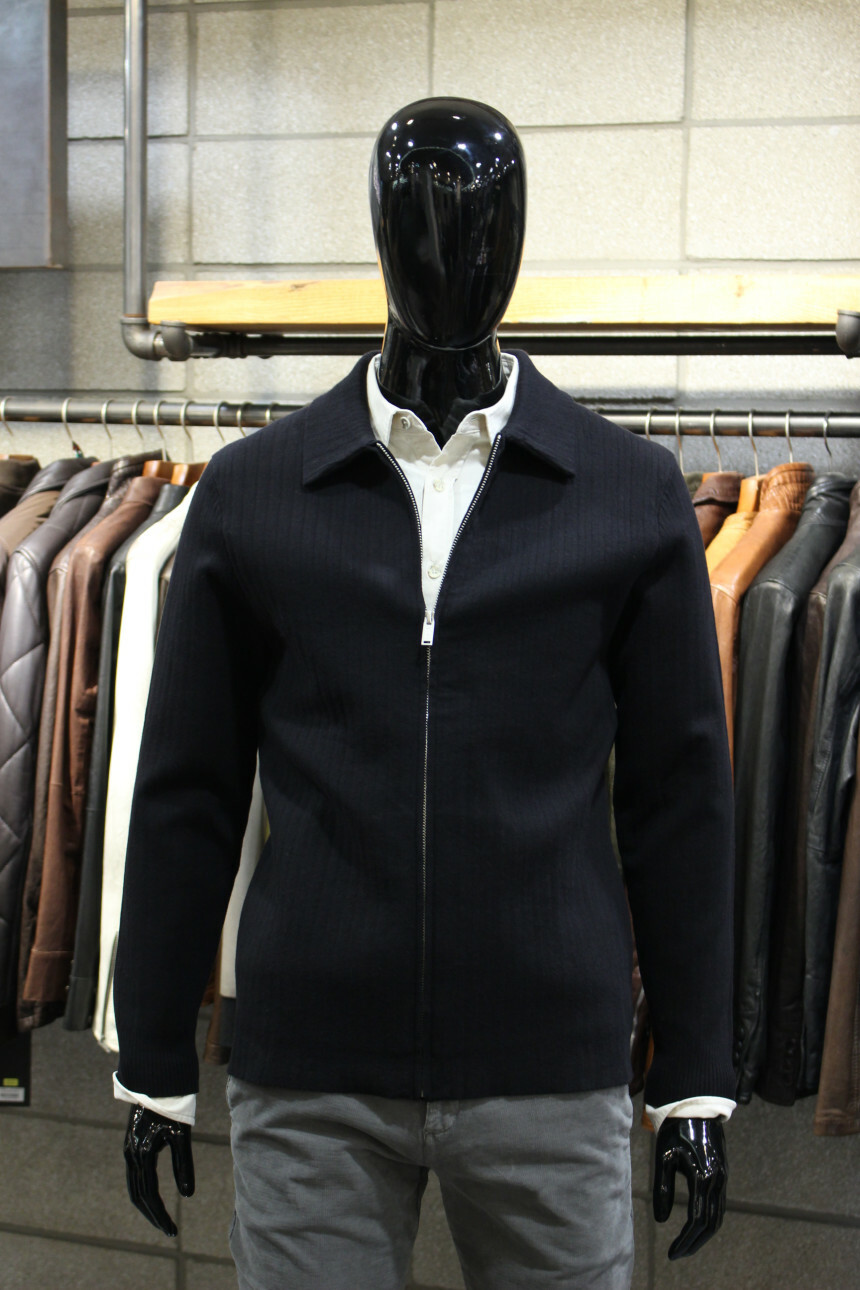 소매단에 반시보리가 있으며 밑단은 시보리없이 똑 떨어지는 라인으로 자켓스러운 느낌을 더해줍니다