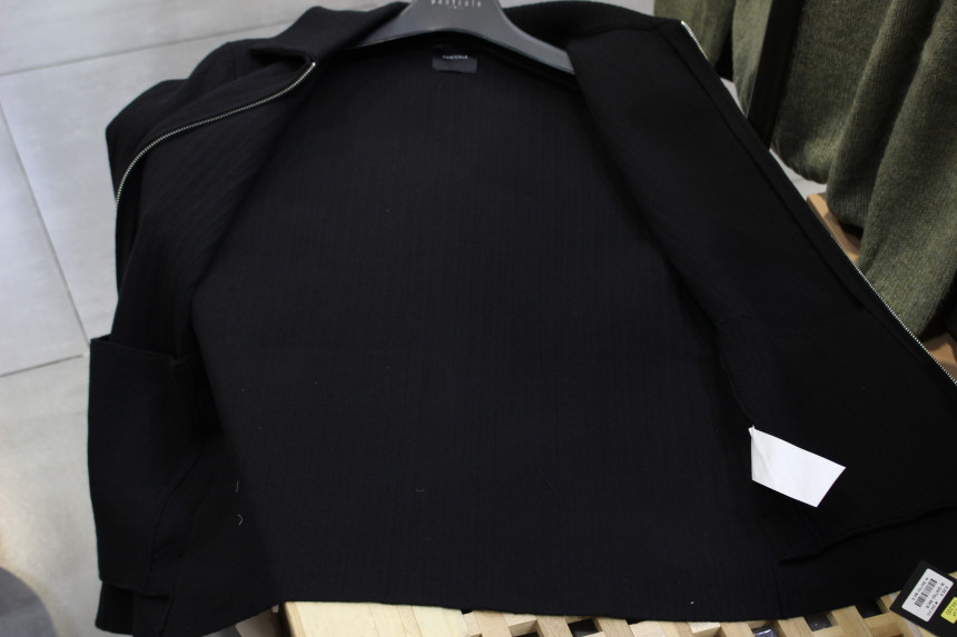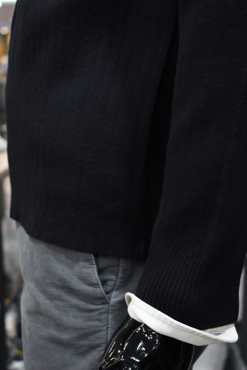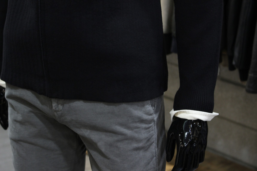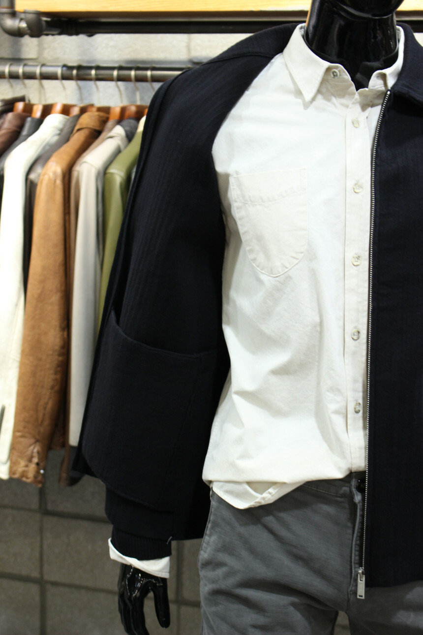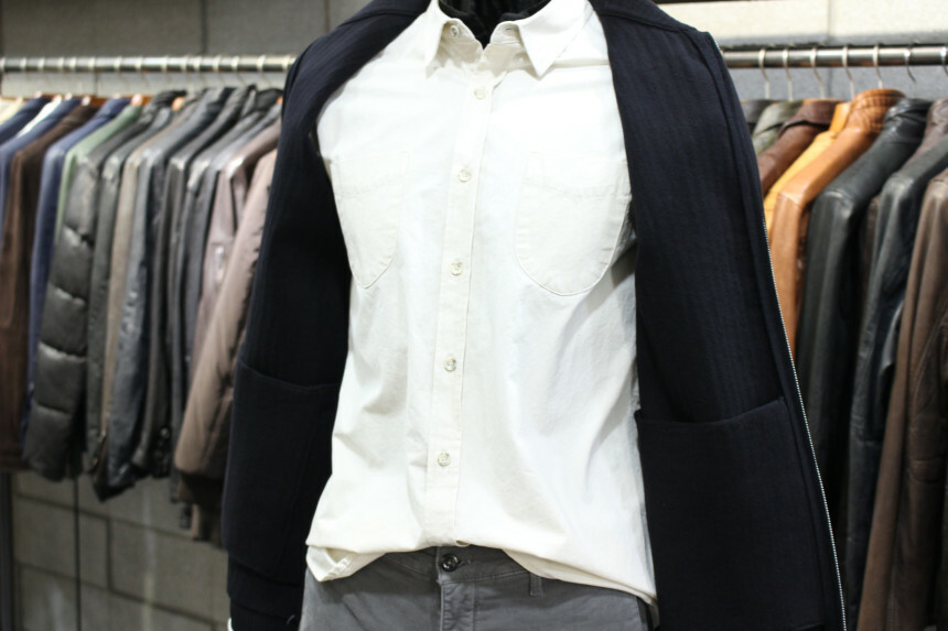 소매단에 반시보리가 있으며 밑단은 시보리없이 똑 떨어지는 라인으로 자켓스러운 느낌을 더해줍니다
